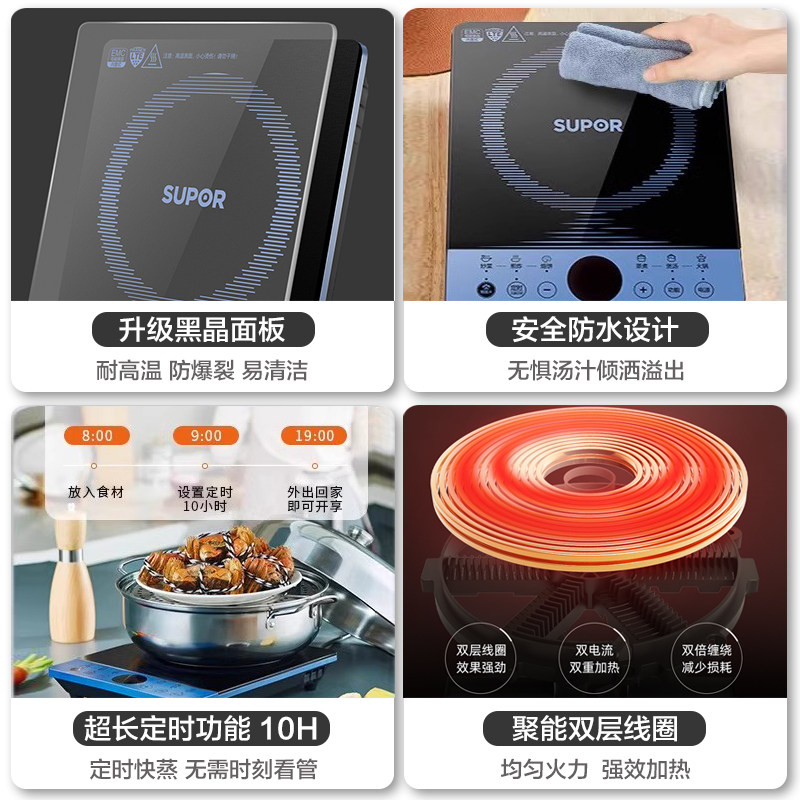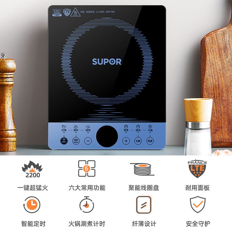 苏泊尔电磁炉家用灶炒菜锅一体智能火锅小型全自动宿舍电池炉套装