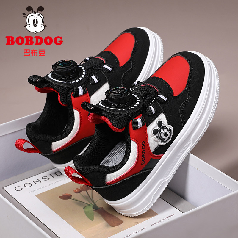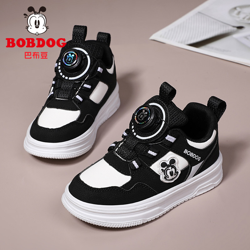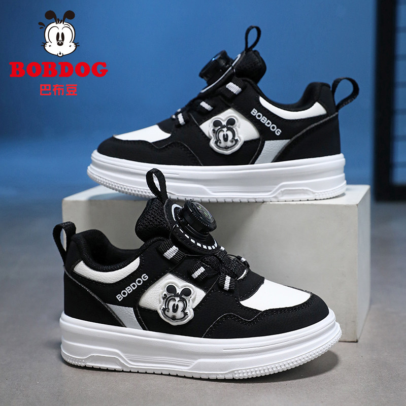 巴布豆童鞋男童运动鞋2025春秋季新款皮面防水男孩子软底儿童板鞋