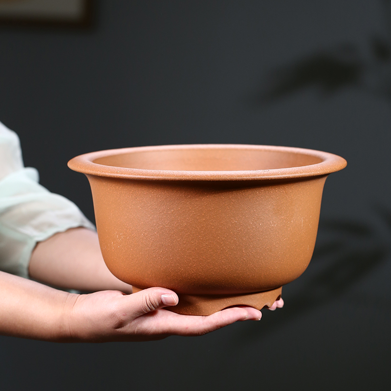 尚扣紫砂 降坡泥手工仿古圆盆 大口径矮圆桌面盆景兰花古典花盆
