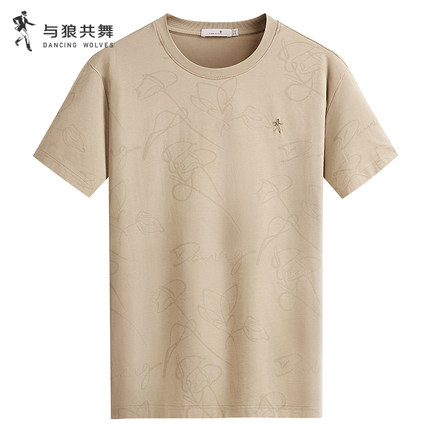 【含桑蚕丝】与狼共舞满印圆领短袖T恤男2025夏季新款轻柔顺滑短t