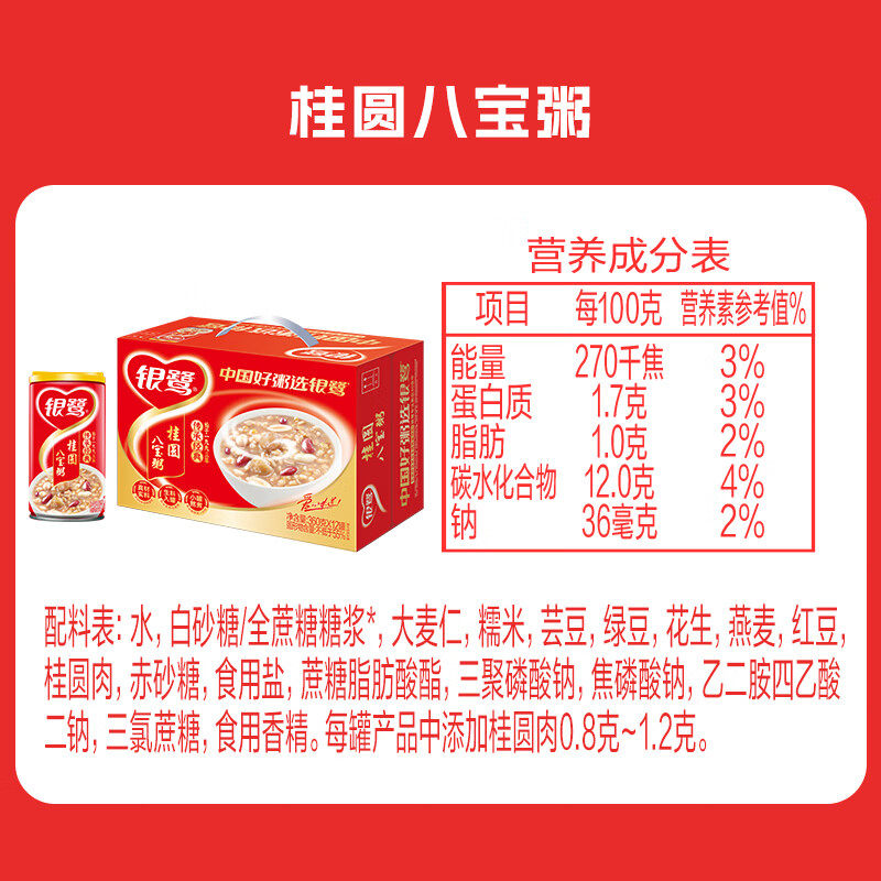 银鹭桂圆八宝粥360g*12罐营养早餐速食粥方便早餐即食礼盒代餐