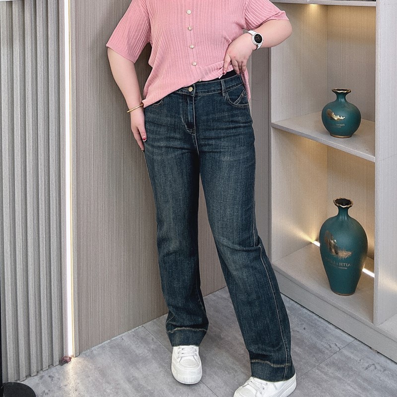 窄版直筒牛仔裤女春装新款2025大码胖mm高腰弹力显瘦阔腿烟管长裤