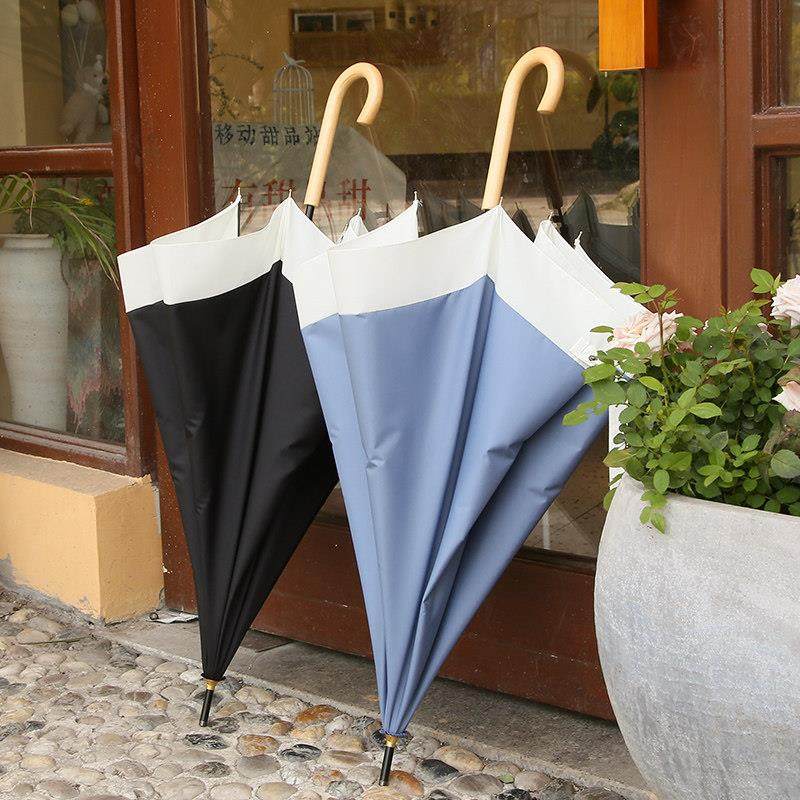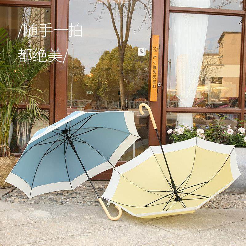 长柄雨伞小清新接边纯色田园风加固直杆伞学生女定制广告伞印logo