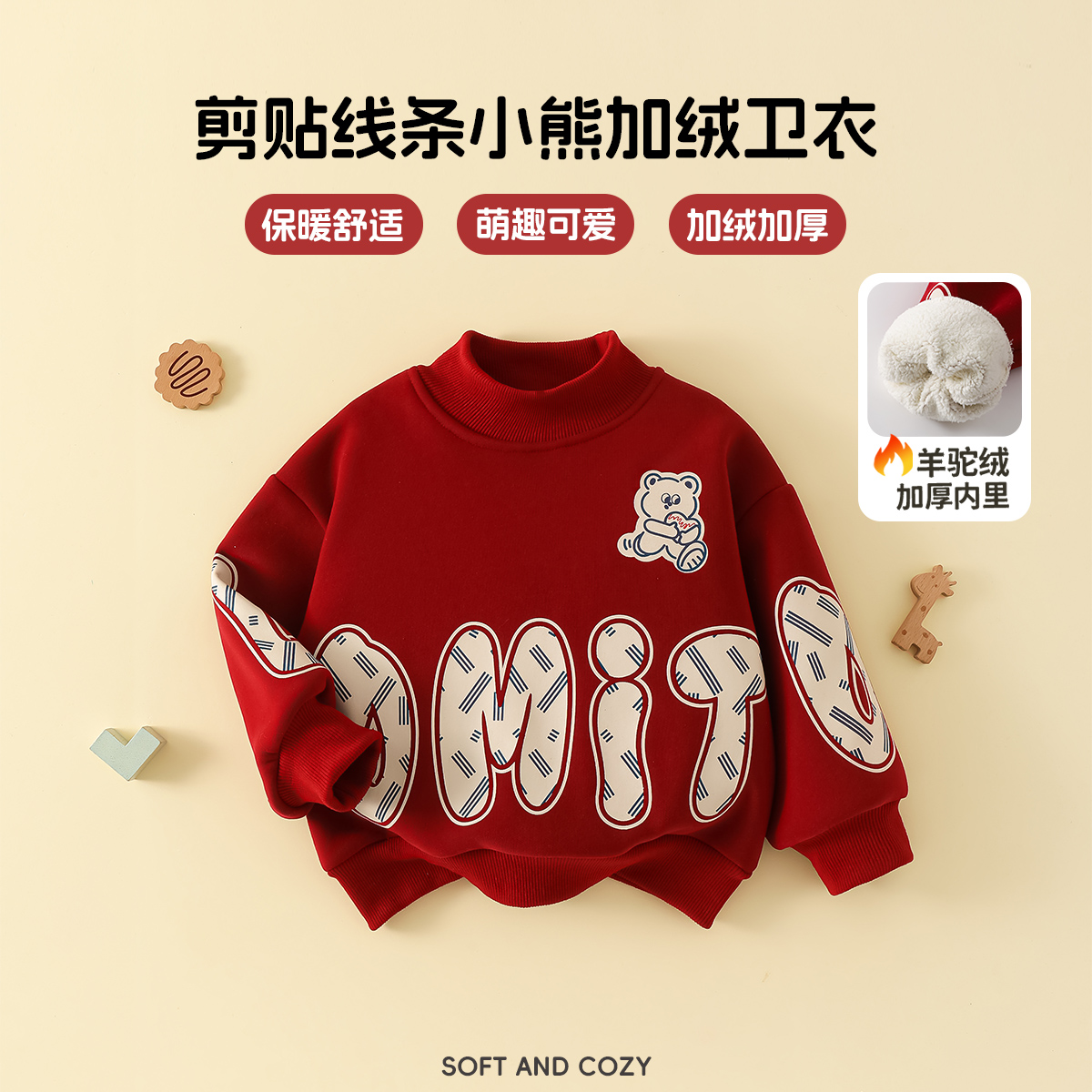 洛米兔男女儿童上衣加绒加厚童装卫衣可爱保暖软糯外套2025新款