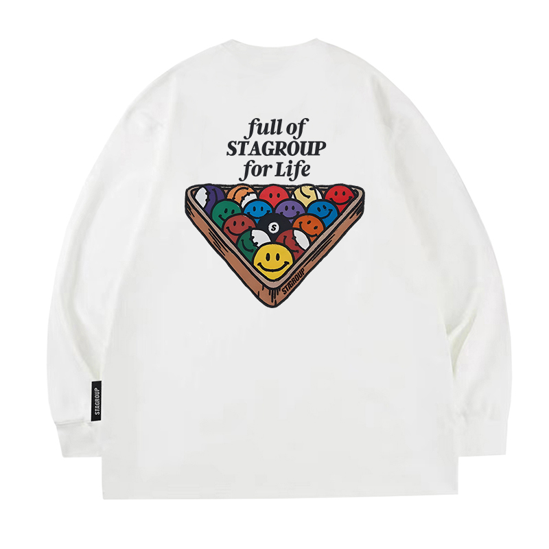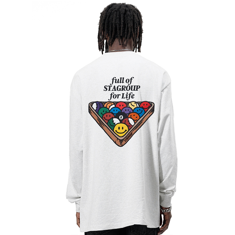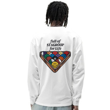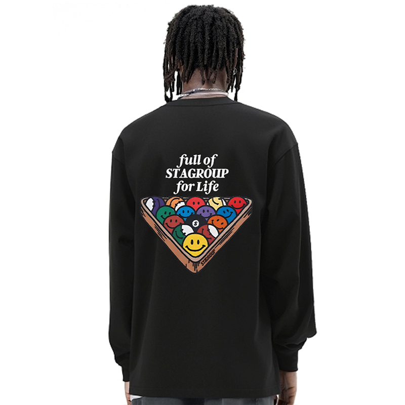STA美式台球文化宽松重磅长袖T恤男女国潮纯棉情侣体恤春秋打底衫