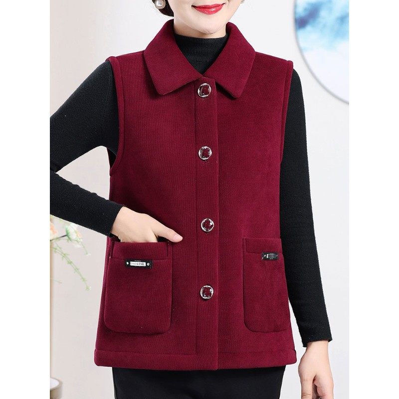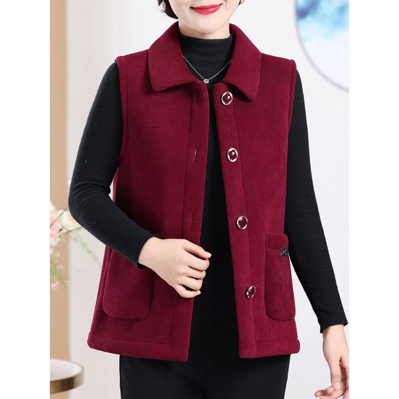 妈妈秋冬装加绒马夹中老年人女背心马甲加厚坎肩棉袄外套红色薄款