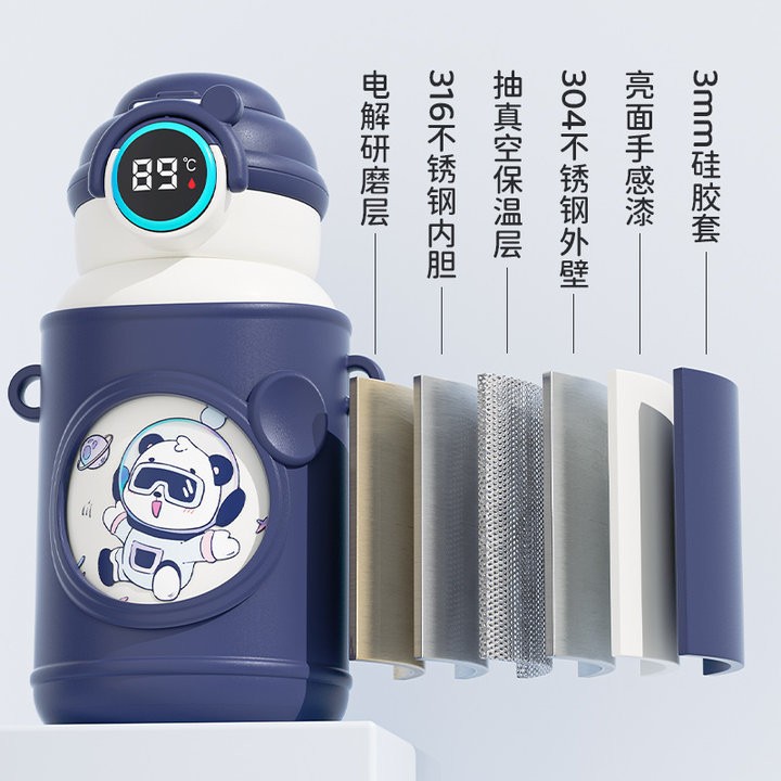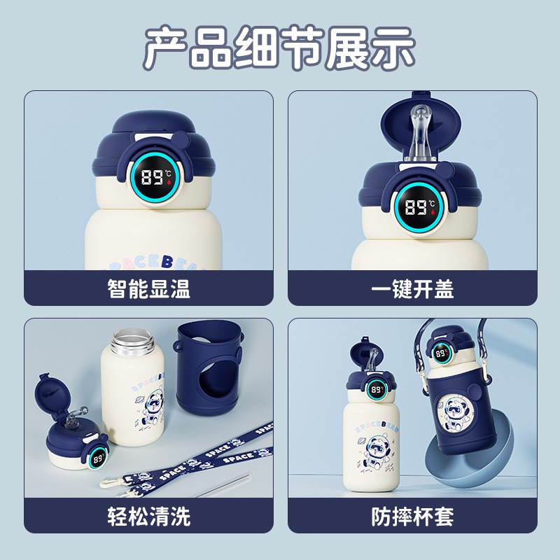 智能316不锈钢保温杯 大容量可爱卡通学生儿童双饮吸管水杯儿童壶