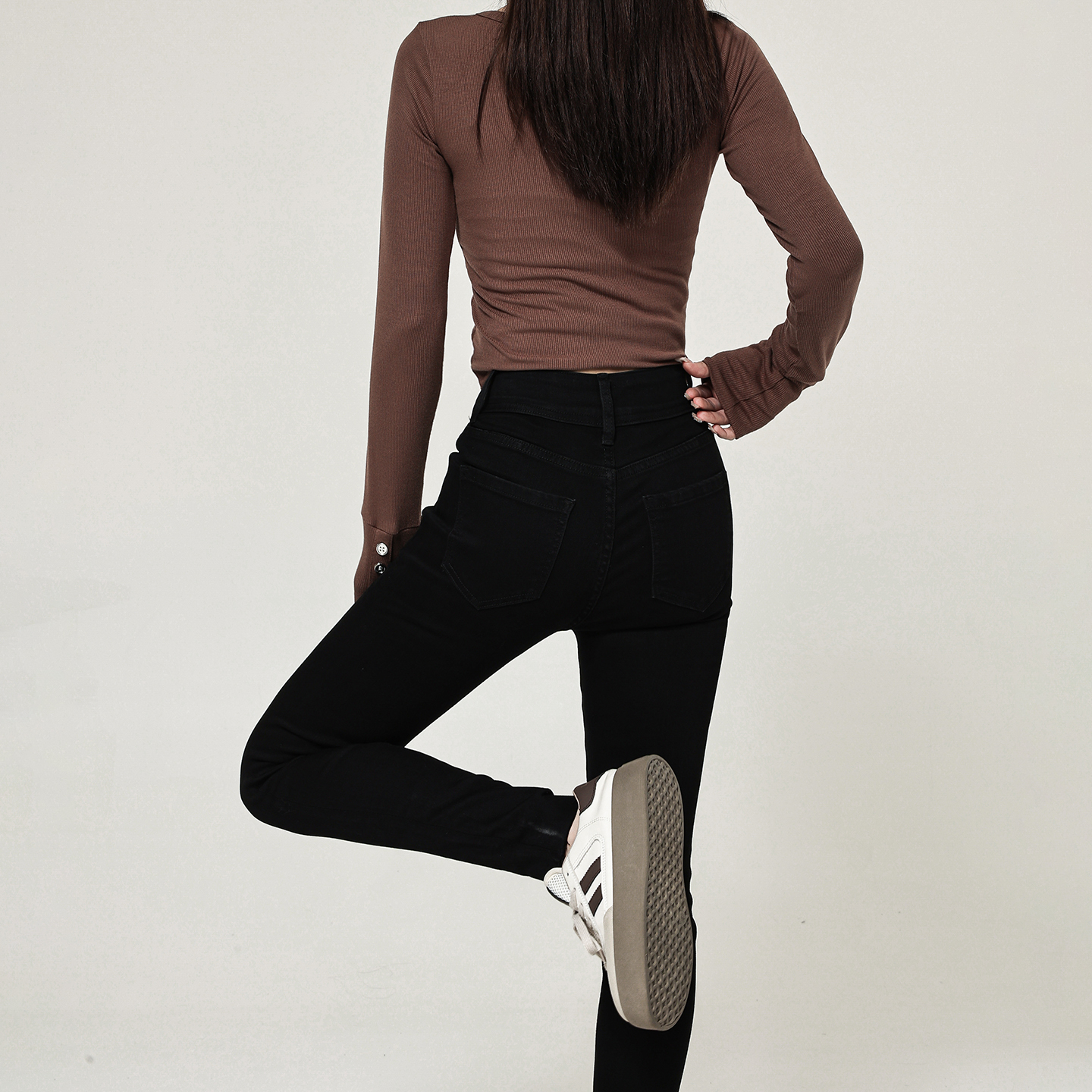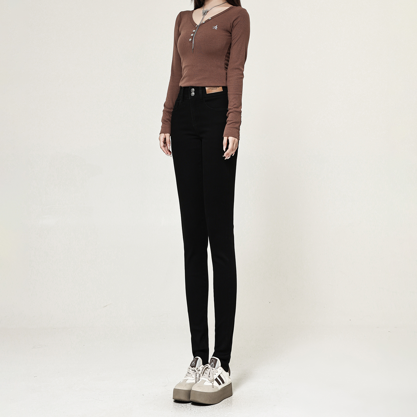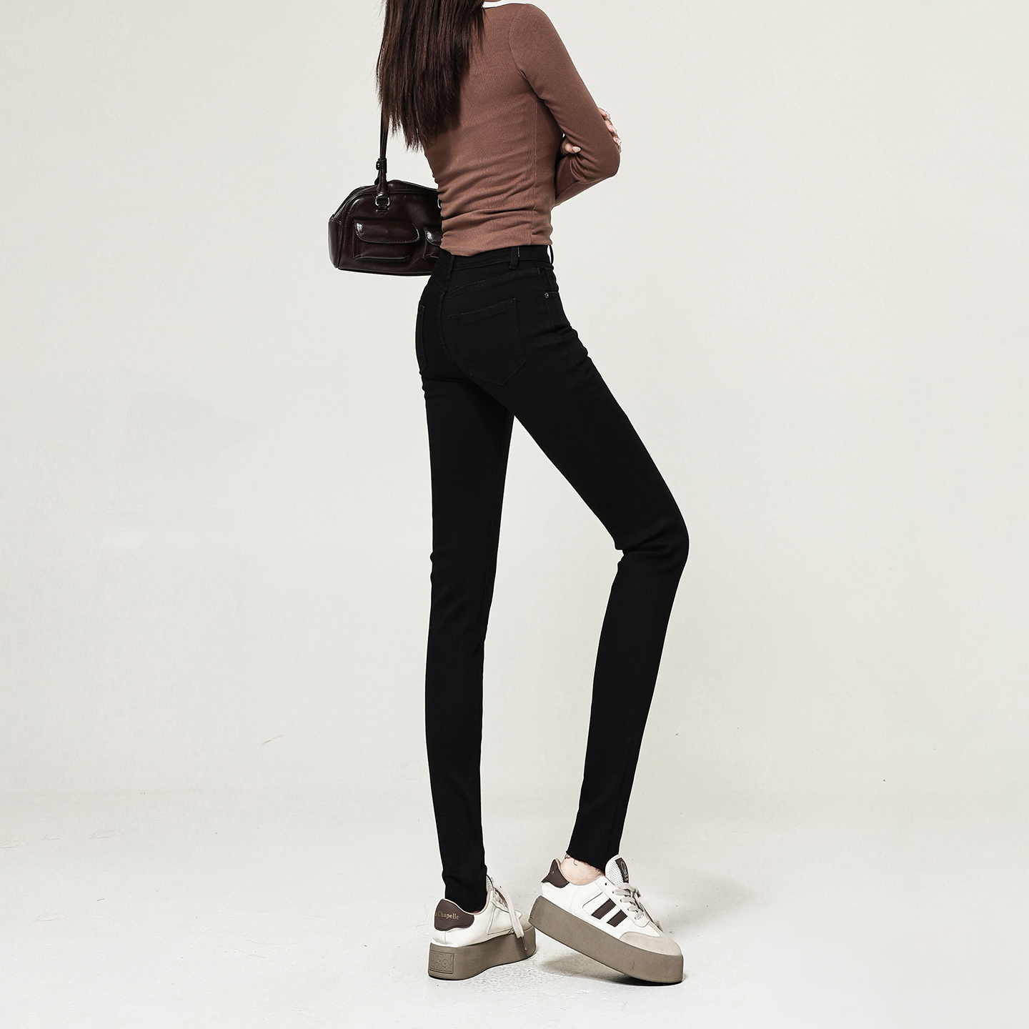 黑色双扣小脚牛仔裤女2025秋季新款高腰修身显瘦弹力配靴子铅笔裤