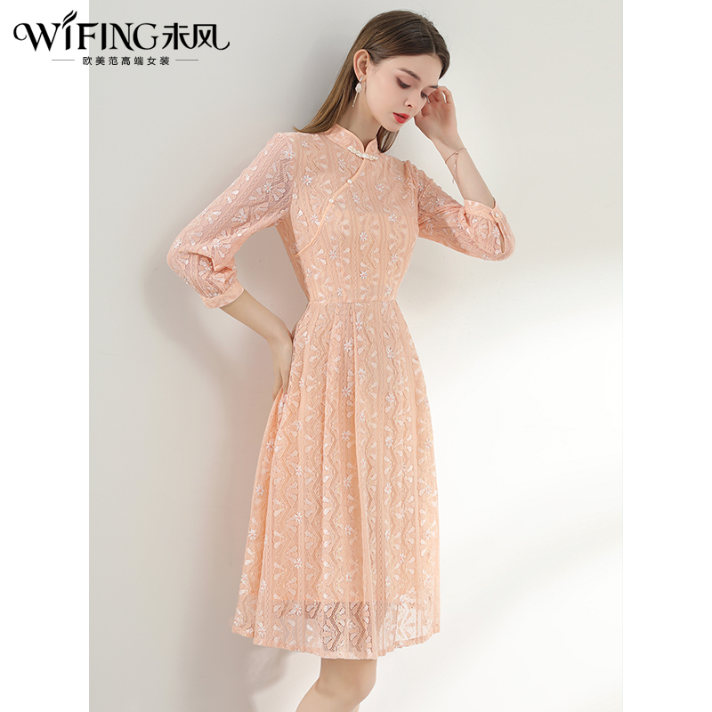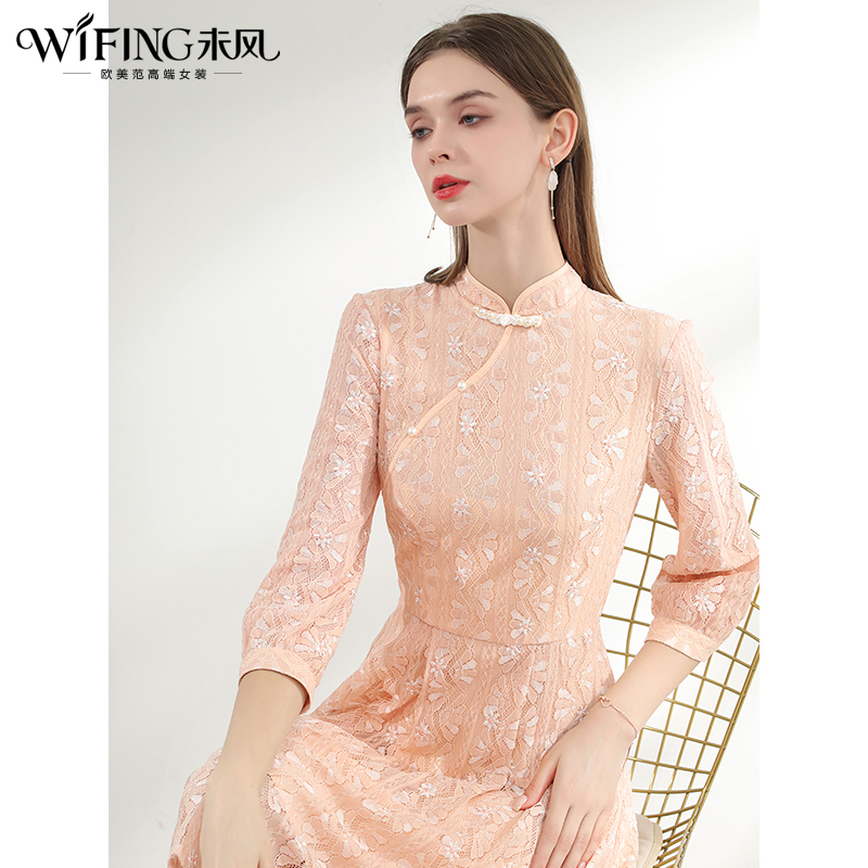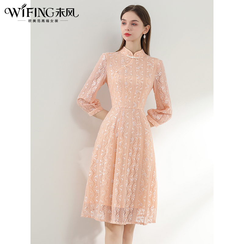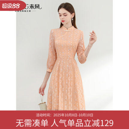未风改良旗袍蕾丝连衣裙女秋2025秋装新款女装复古新中式显瘦裙子