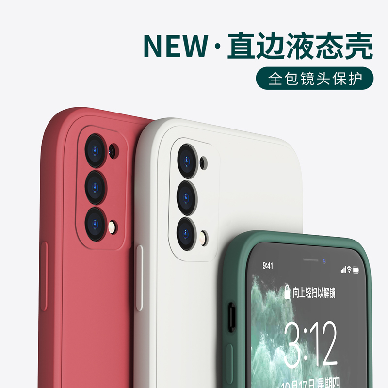 适用opporeno5手机壳新款reno5pro保护套OPPO液态硅胶0pp0直边全包软壳5G防摔外壳por+男女reno5k钢化膜