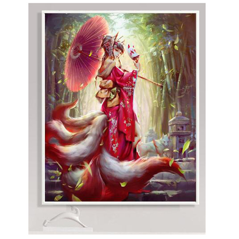 九尾狐唯美风人物手工十字绣