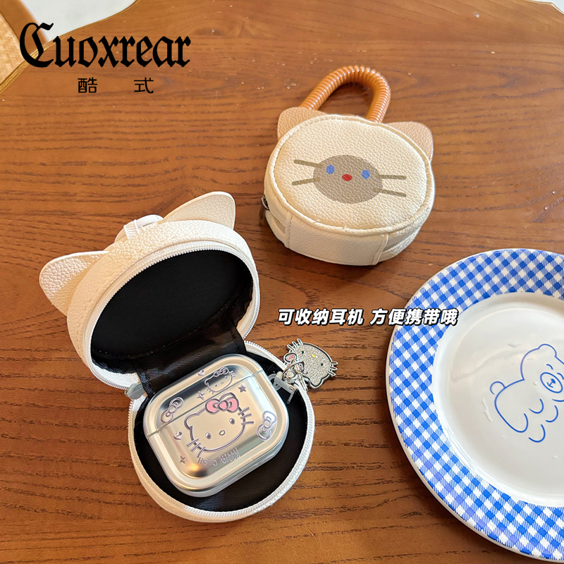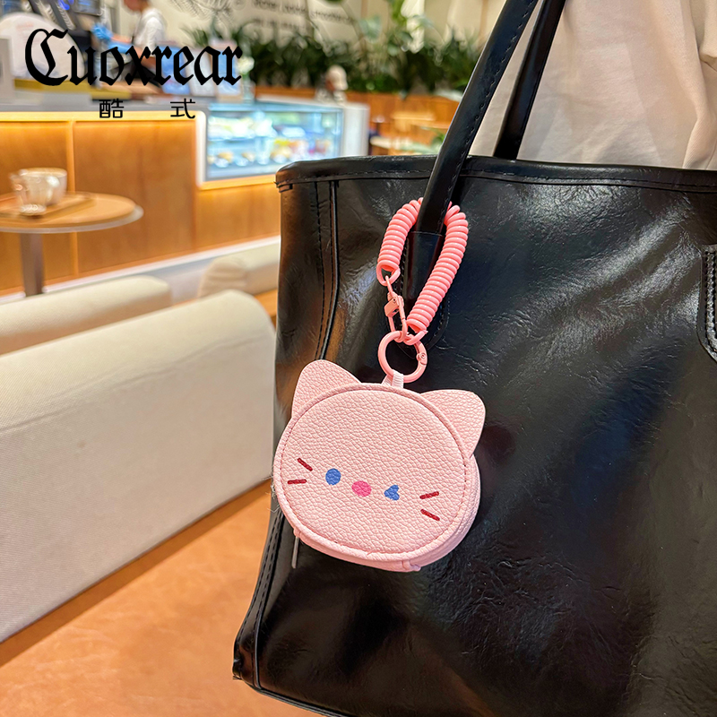 可爱猫咪零钱包pu皮蓝牙耳机迷你收纳包卡通创意迷你小钱包挂件