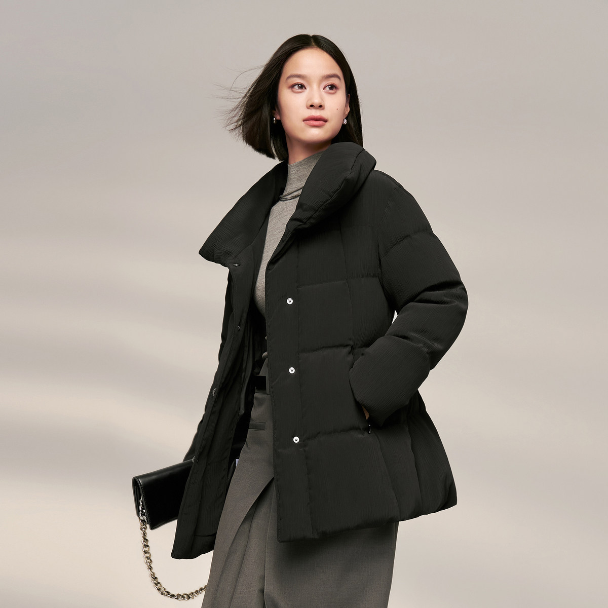 【鹅绒】波司登冬季女短款静奢风高智感厚羽绒服时尚小廓形翻领