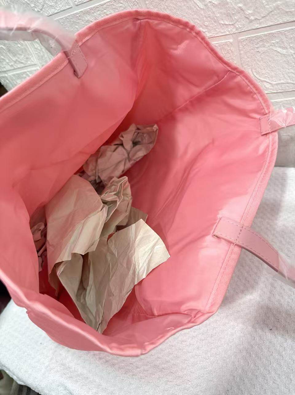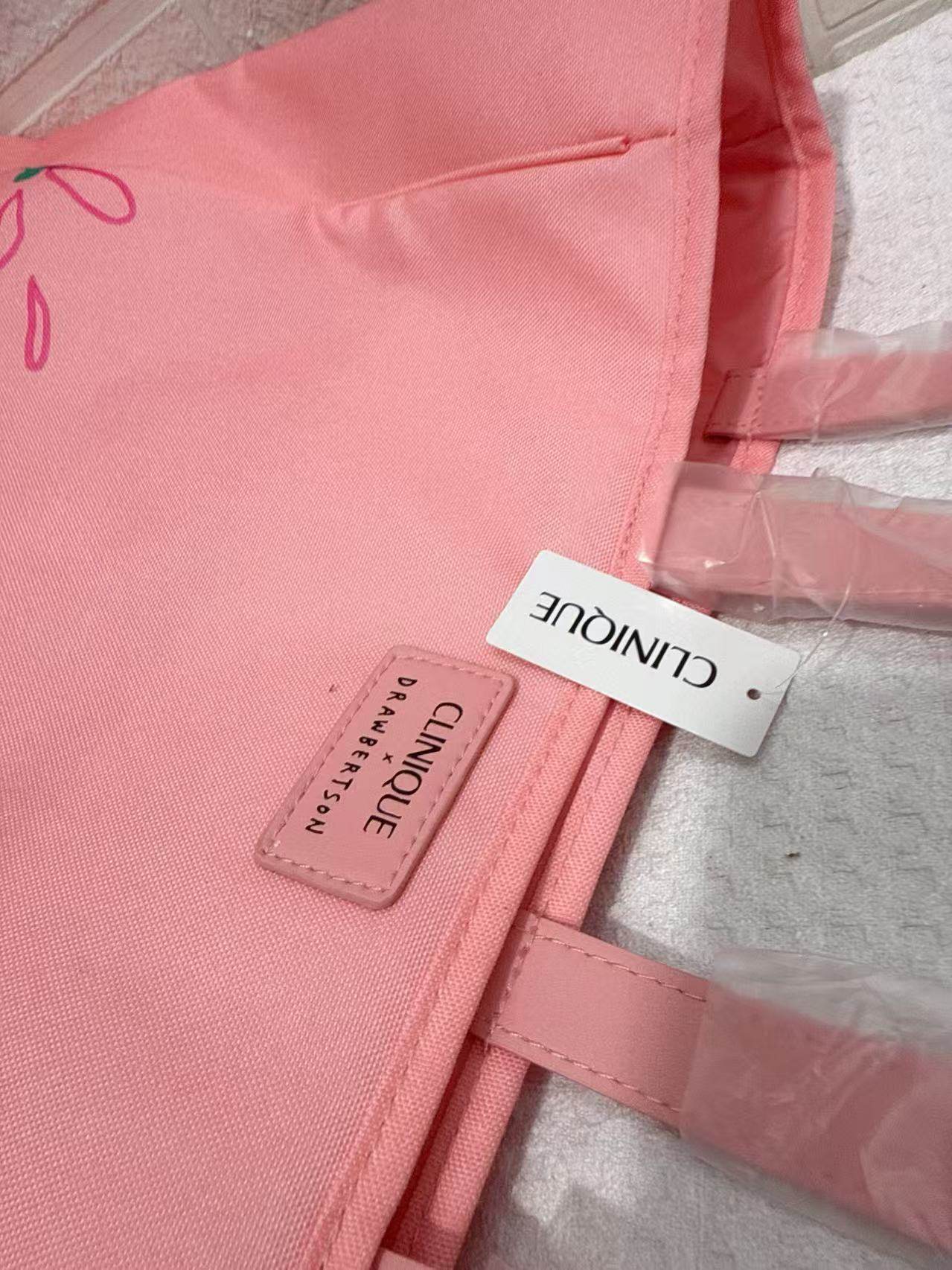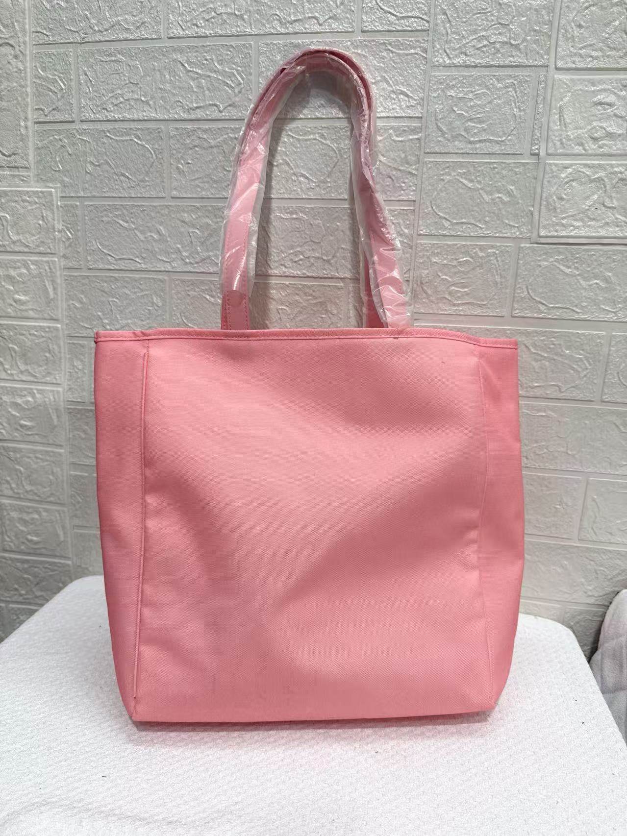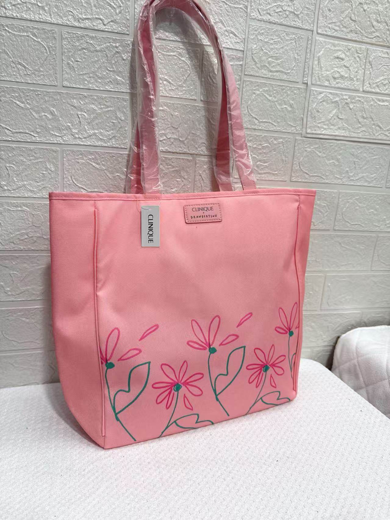 外贸新款倩碧粉色印花简约轻便大容量通勤托特包收纳购物包单肩包