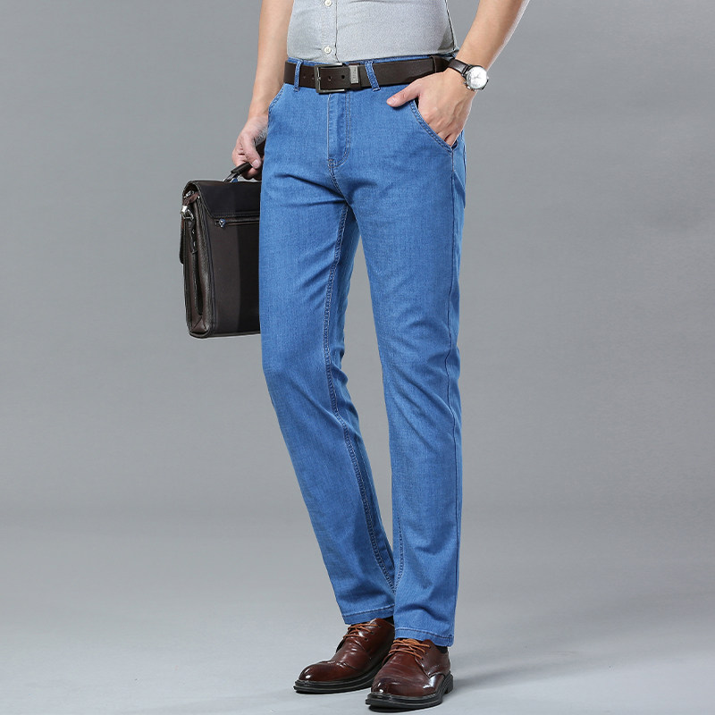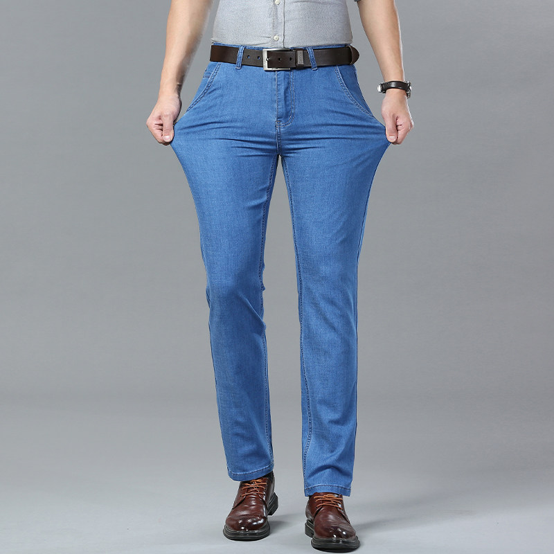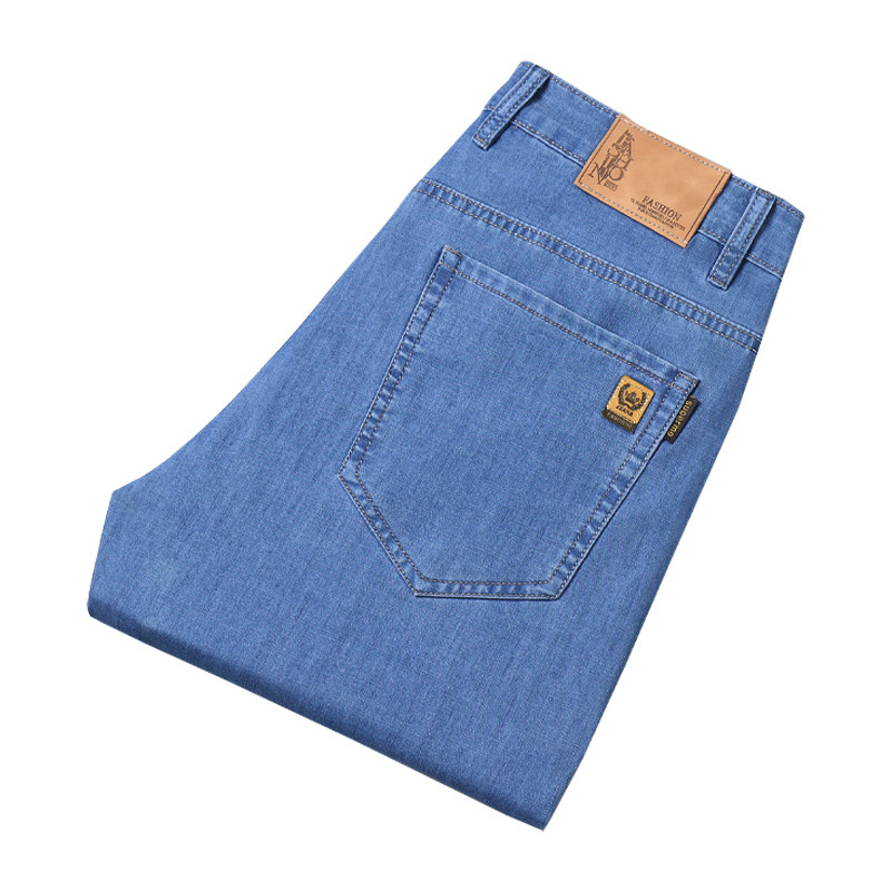夏季超薄高弹力天丝牛仔裤男士宽松直筒高腰商务大码柔软休闲男裤