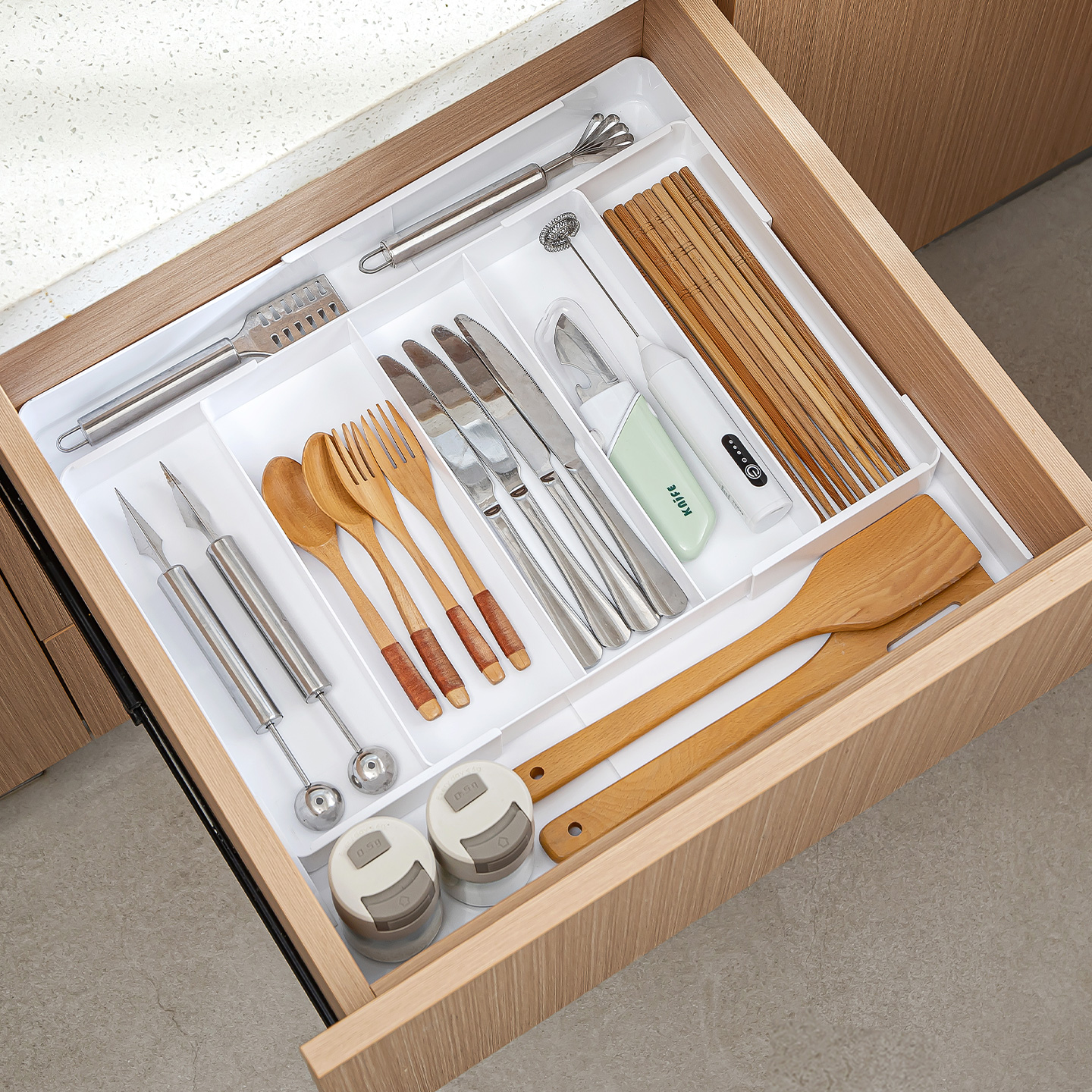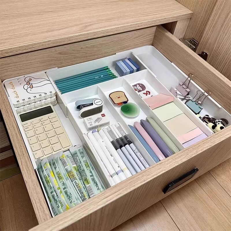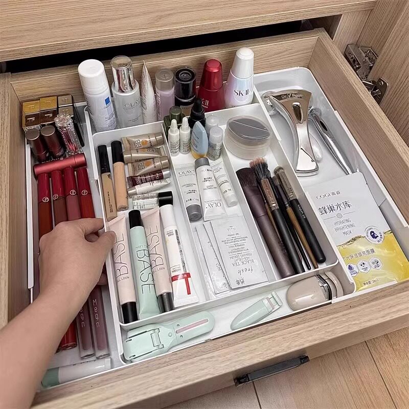 可伸缩抽屉收纳盒化妆品梳妆内置分隔盒厨房橱柜分格分类整理办公