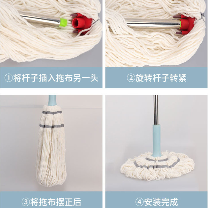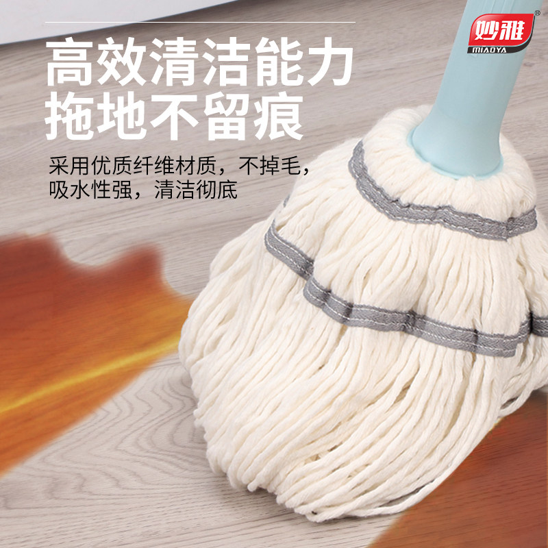 妙雅免手洗自拧水拖把加粗纯棉纱家用清洁不掉毛吸水旋转老式速干