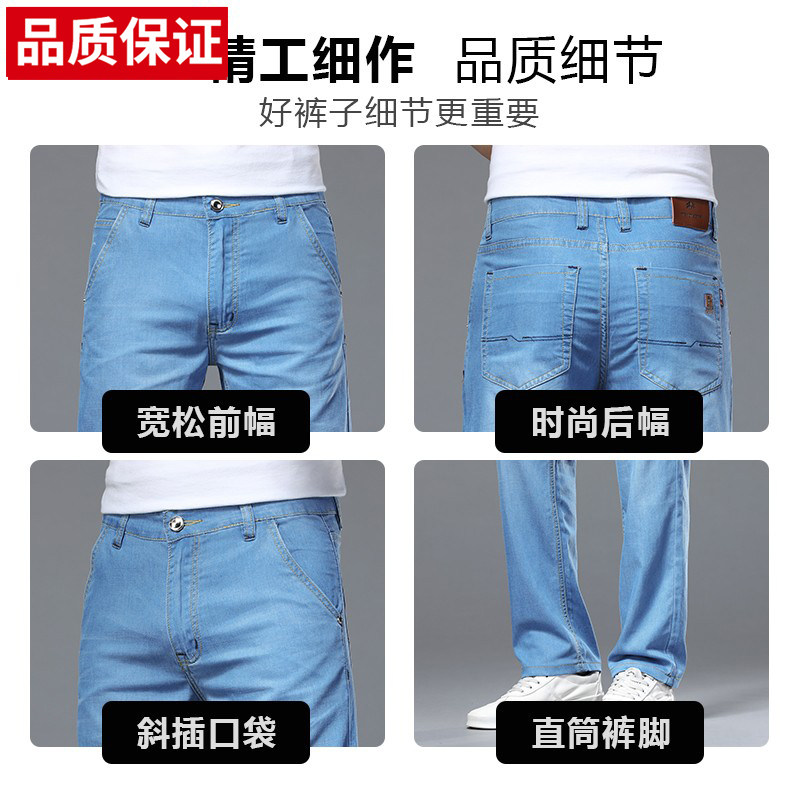 天丝薄款牛仔裤男直筒宽松男士夏季长裤子春季休闲弹力莱赛尔冰丝
