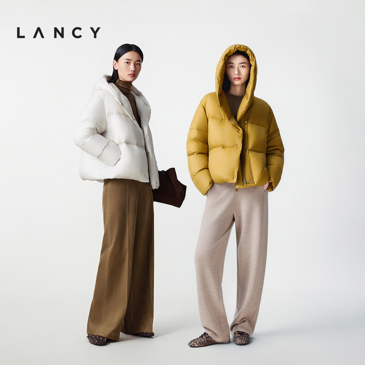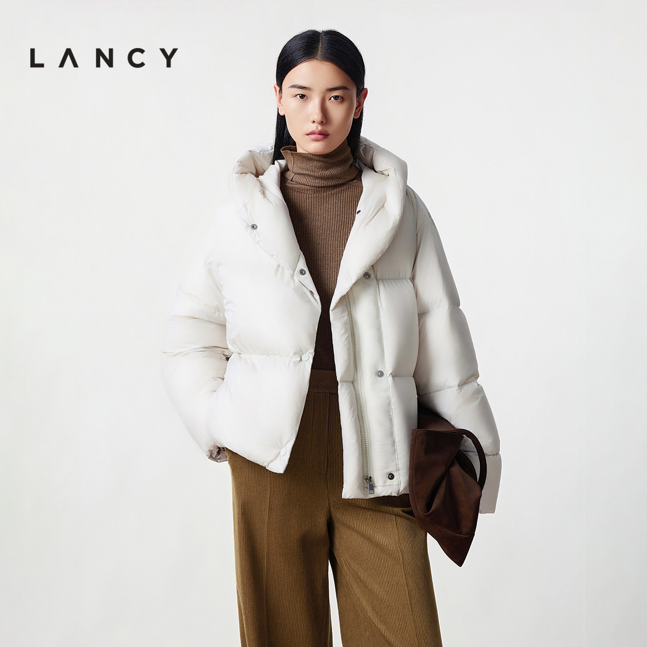 【匈牙利白鹅绒】LANCY/朗姿2025冬季新款连帽廓形短款面包羽绒服