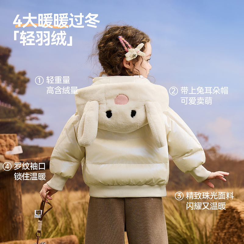 ASK女童羽绒服2025新款冬季儿童冬装洋气保暖女宝宝外套90白鸭绒