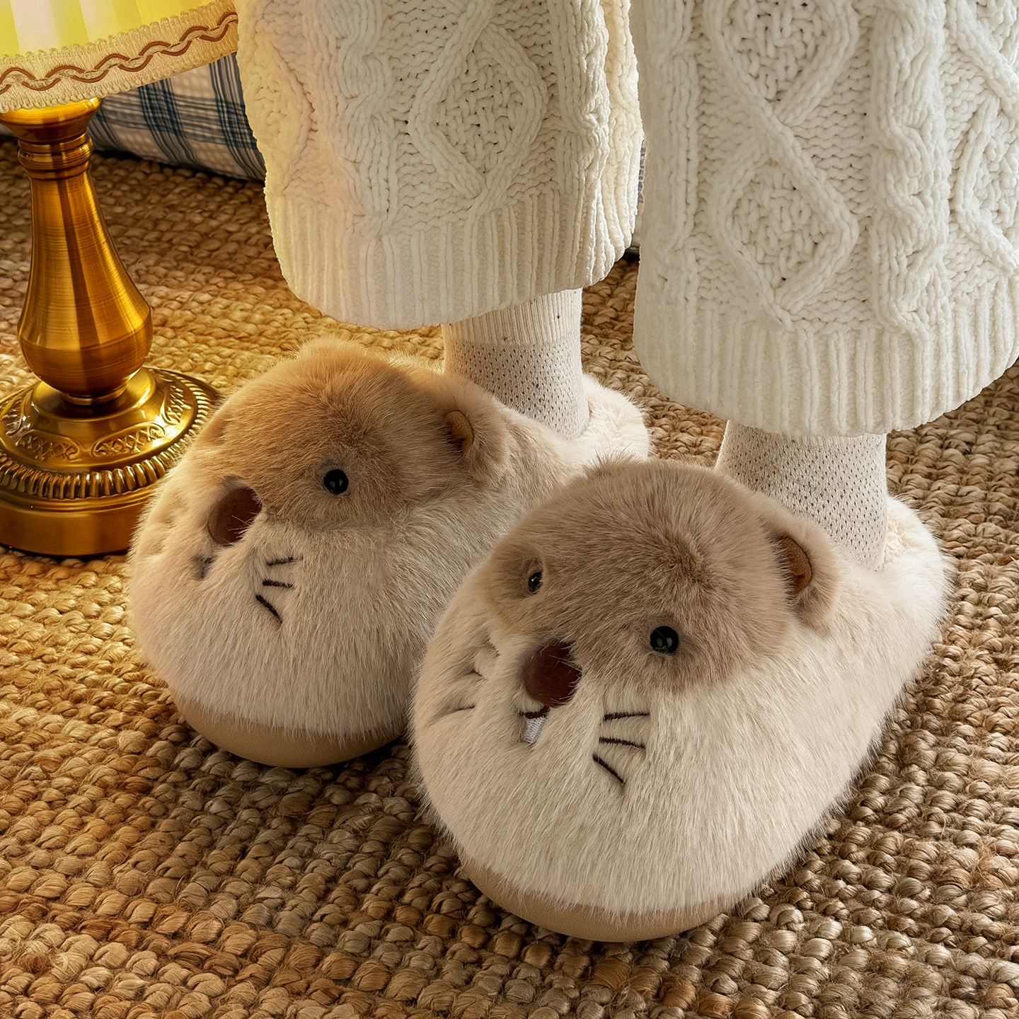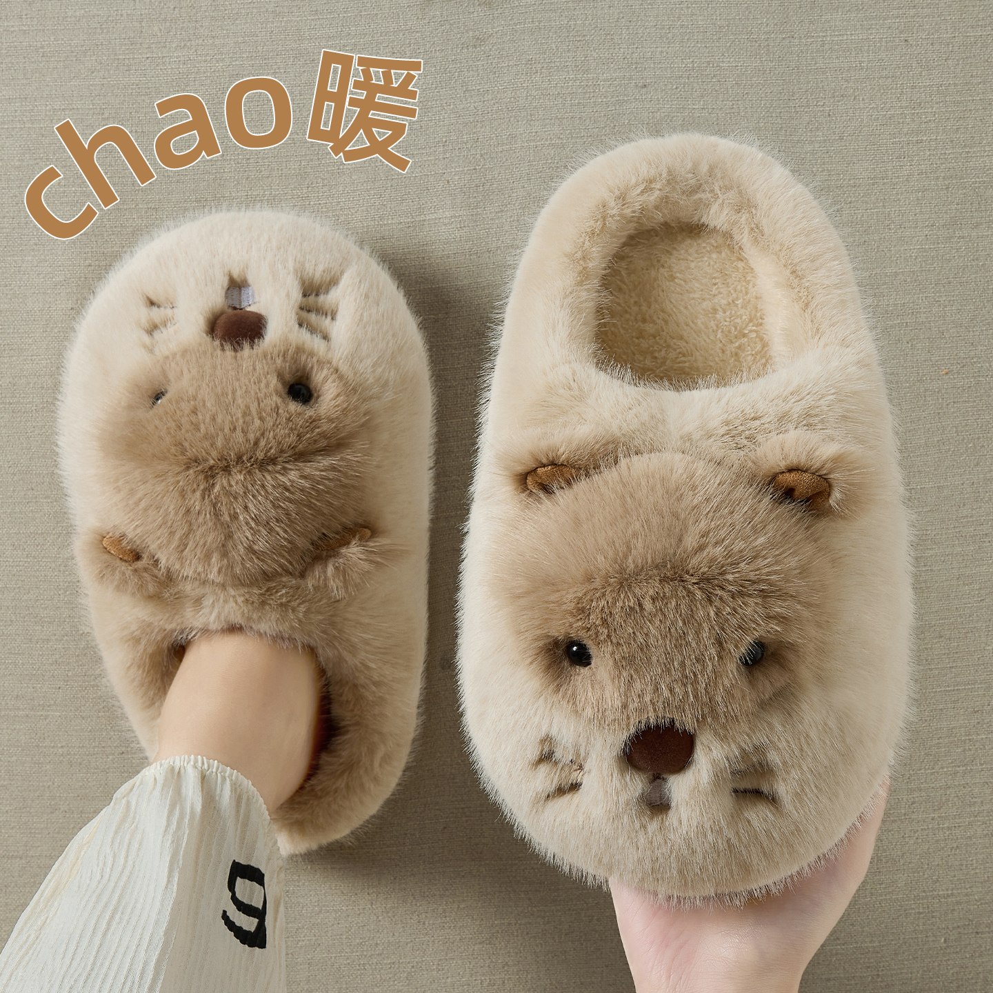 安尚芬土拨鼠棉拖鞋女款秋冬2025新款室内家居可爱毛绒保暖厚底拖
