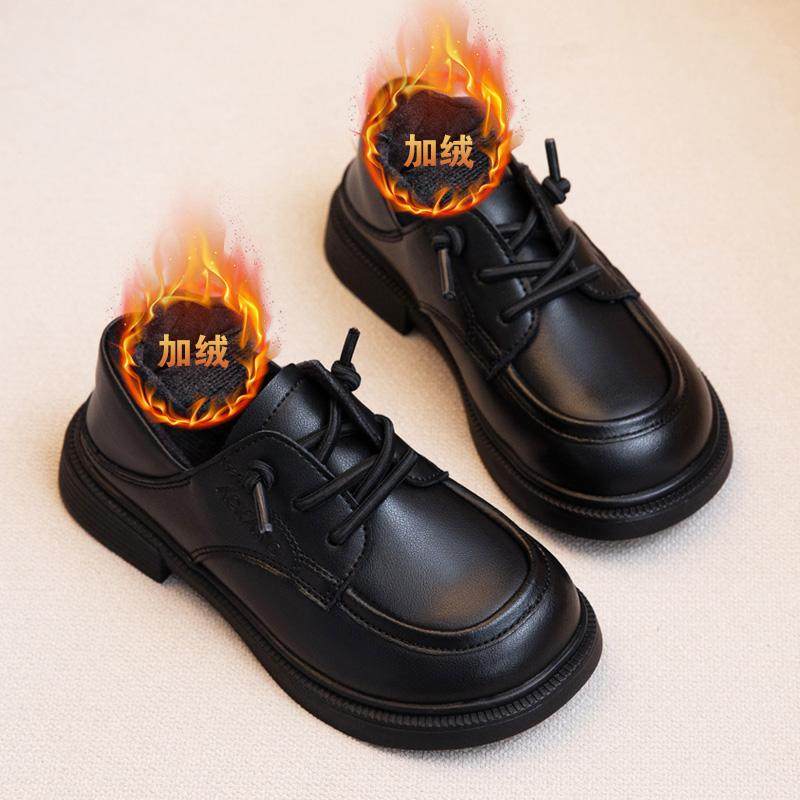 女童小皮鞋2025春秋新款儿童真皮单鞋子软底黑色表演鞋男童豆豆鞋