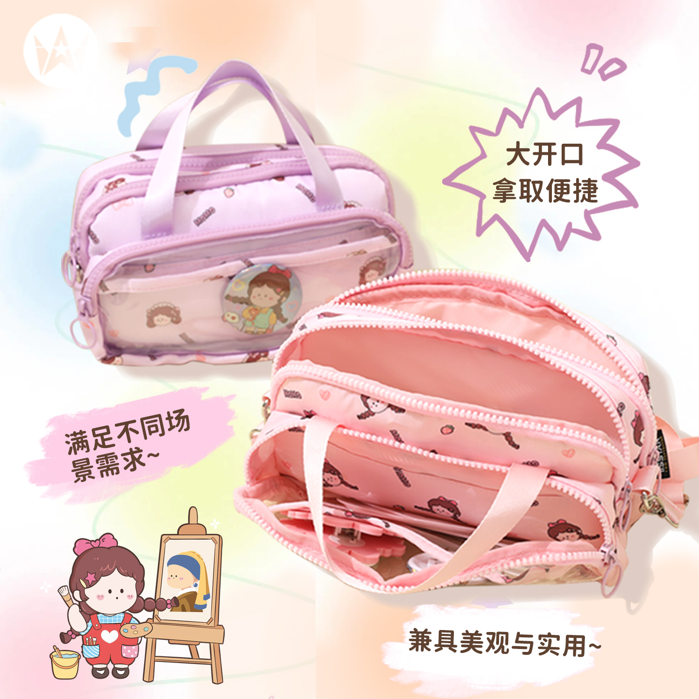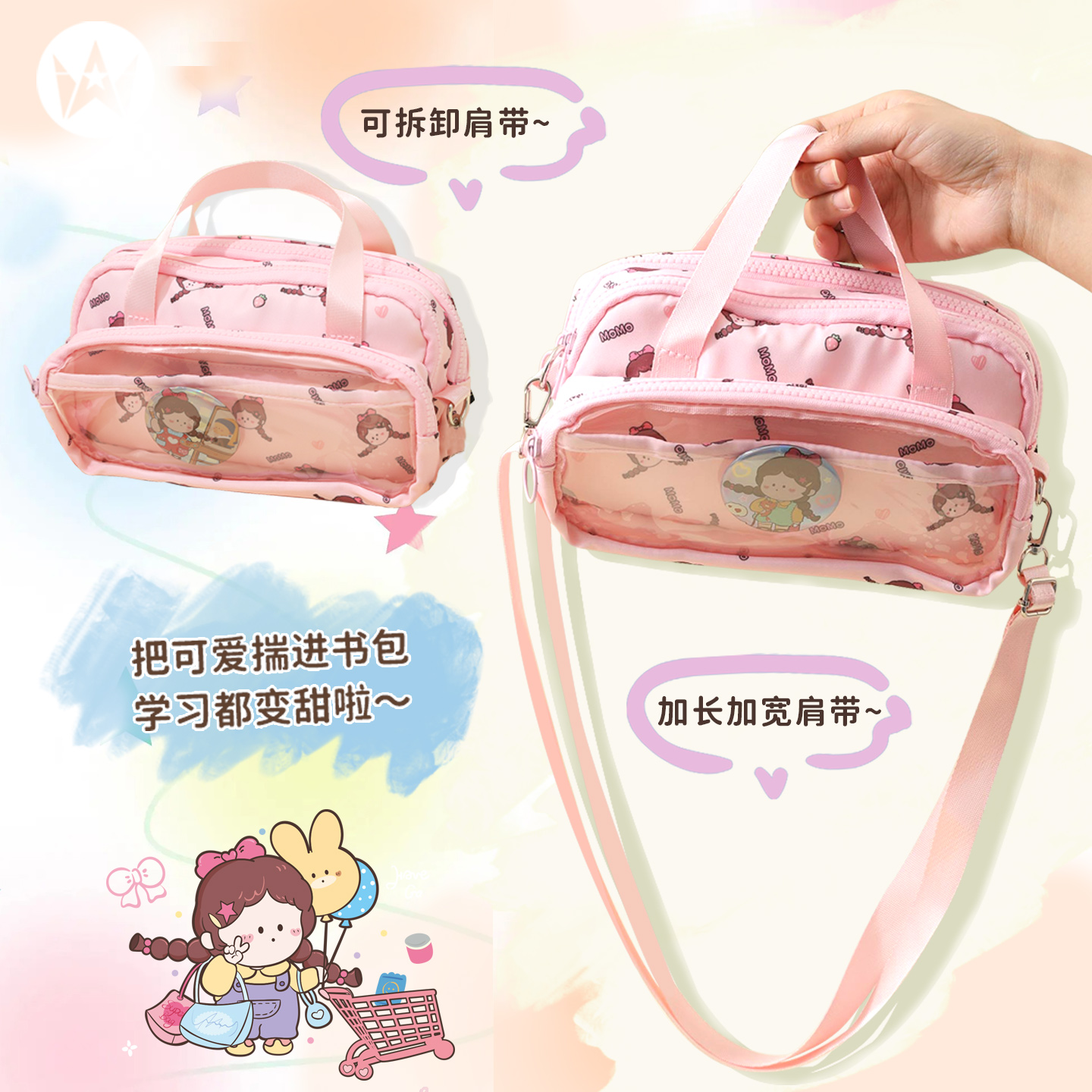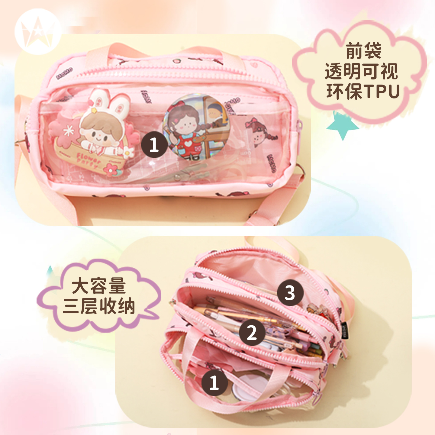 本星大容量高颜值文具盒笔袋痛窗包可手提可斜挎女生铅笔盒小学生女孩儿童多功能收纳包初中生多层小包包