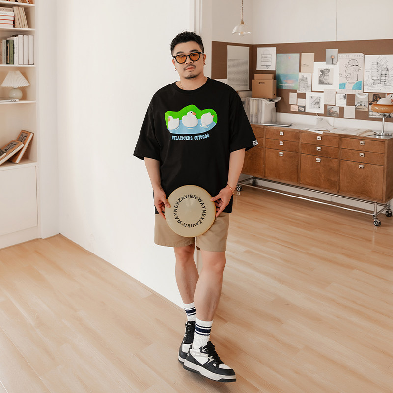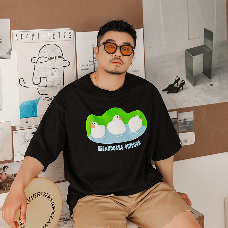 韦恩泽维尔加肥加大男装大码夏季休闲圆领立体卡通印花棉T恤9169