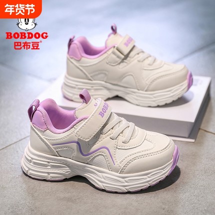 巴布豆女童运动鞋皮面防水女孩鞋子秋冬款2026休闲儿童老爹鞋防滑