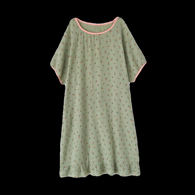 纯棉纱布睡裙女加大码胖mm200斤夏季短袖薄款宽松孕妇睡衣家居服