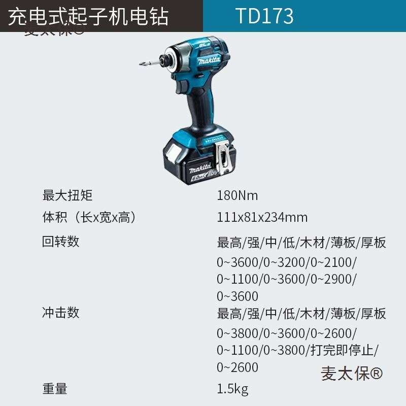 牧田进口TD173充电式起子机电钻18V手持式电动螺丝批批王地麦太保