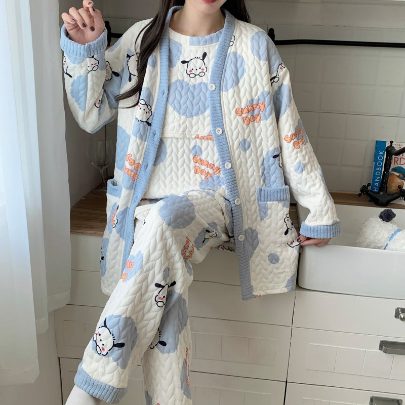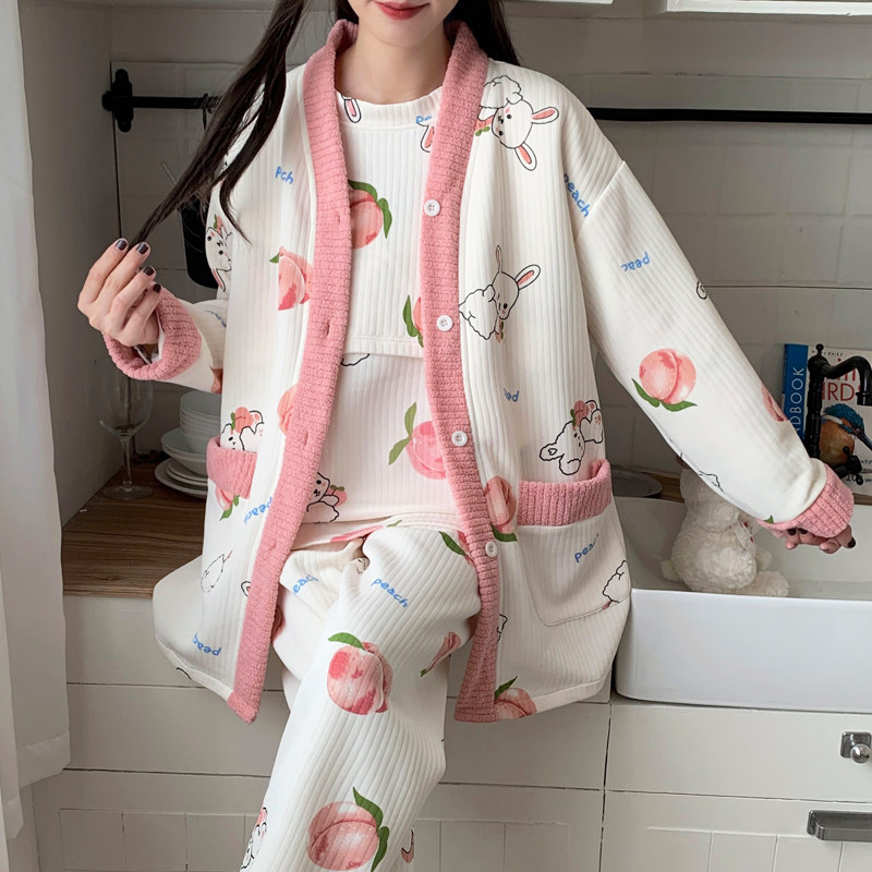 孕妇睡衣三件套空气棉月子服春秋冬款12月份11纯棉产后哺乳家居服