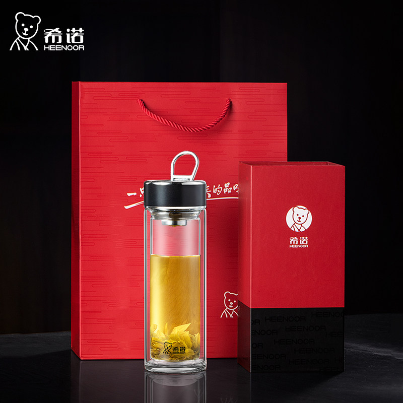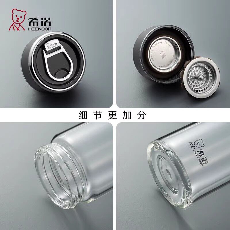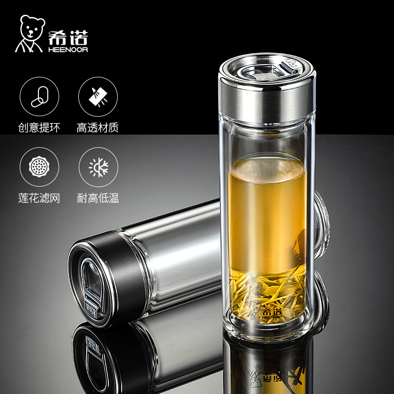 希诺高硼硅双层玻璃杯男女士提环便携水杯大容量泡茶杯支持定制