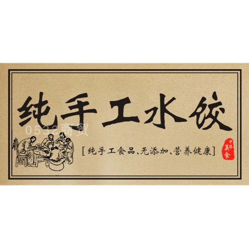 不干胶标贴标签纯手工制作贴纸腰封餐盒水饺馄饨盒饺子广告封口贴