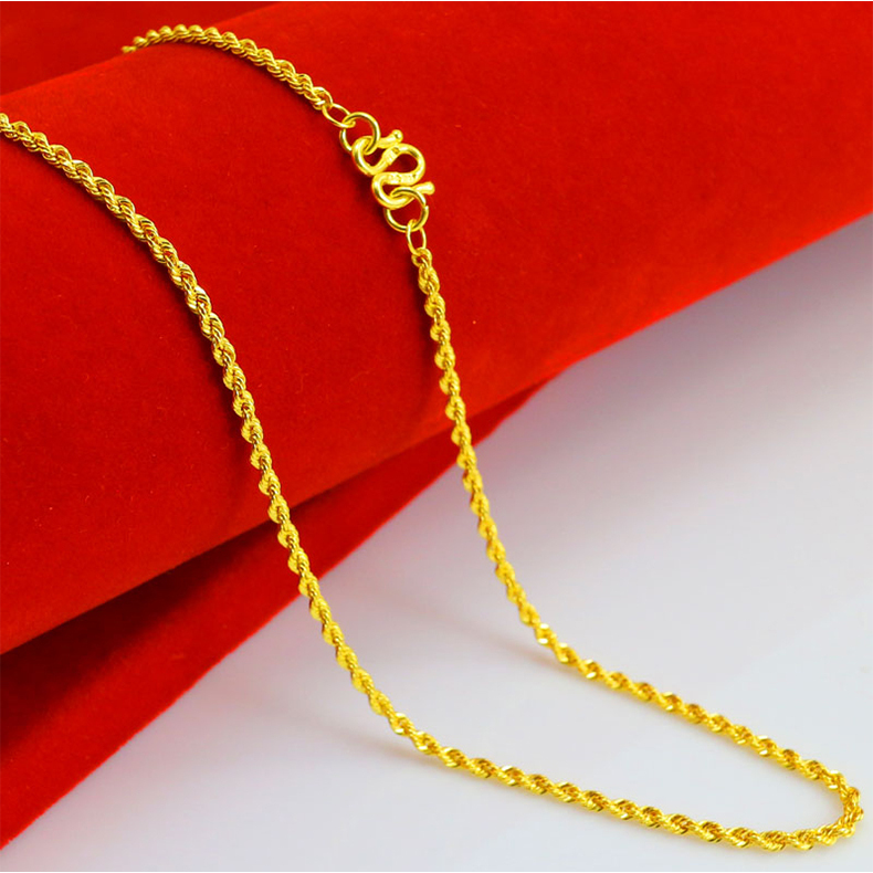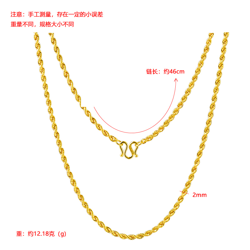 正品黄金项链9999足金男女款麻花链纯金麻绳链结实粗细送朋友礼物