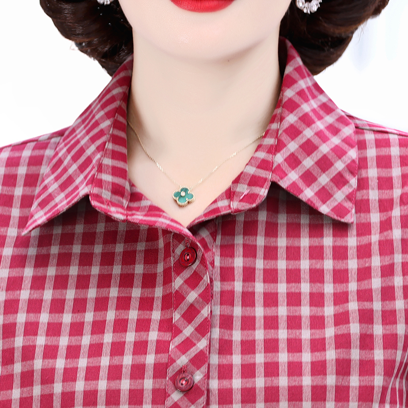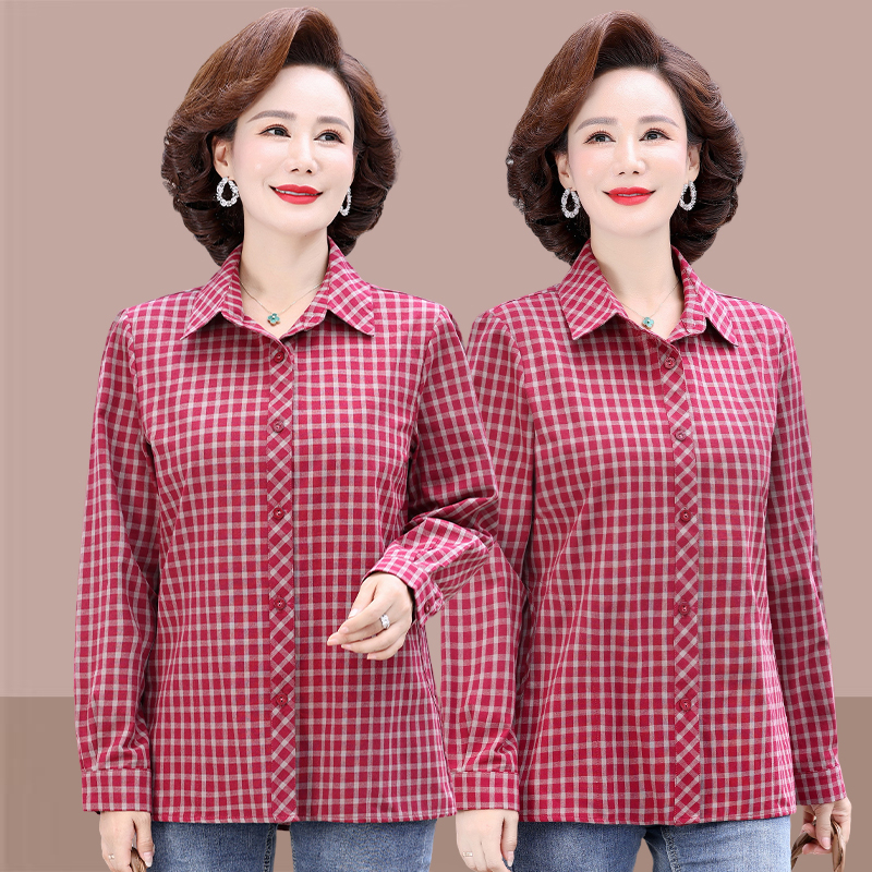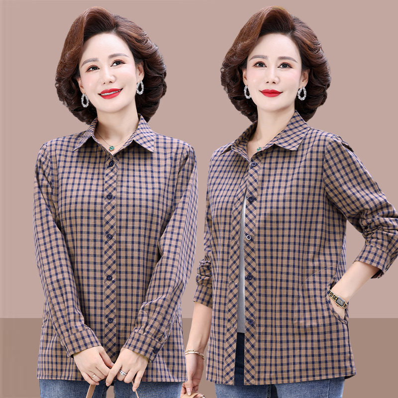 秋装新款中老年女装妈妈装长袖全棉衬衫宽松大码纯棉格子衬衣开衫