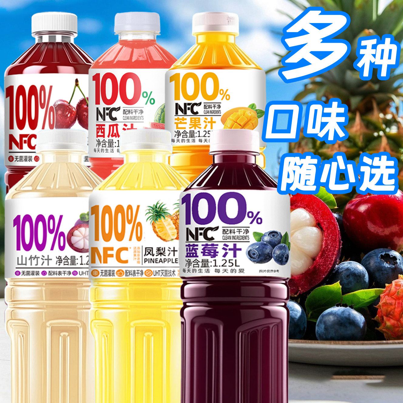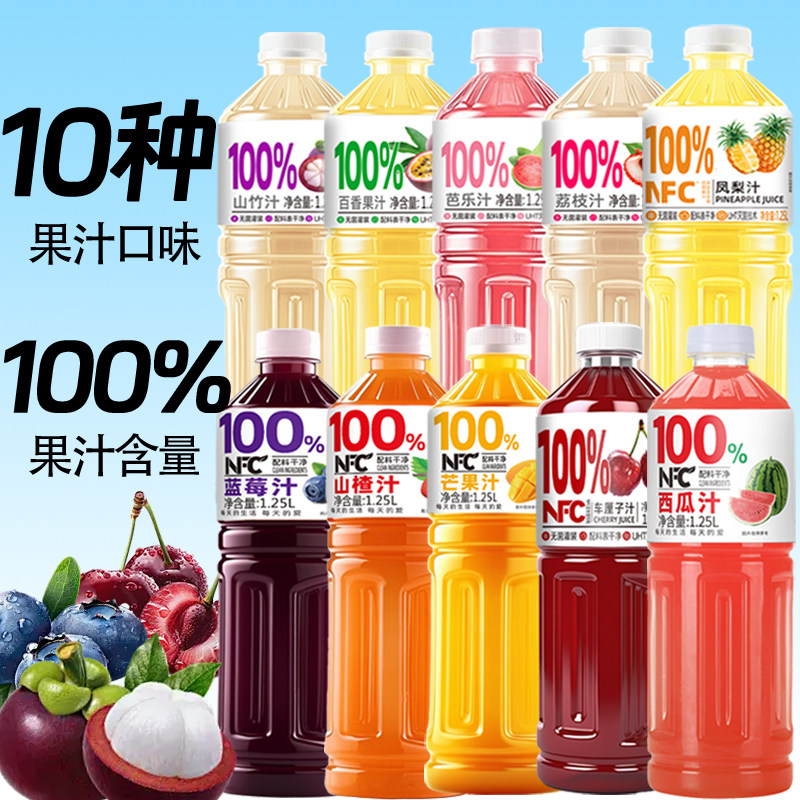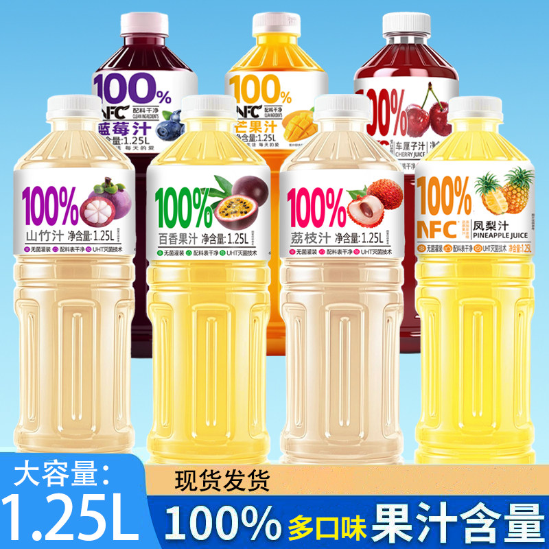 1.25L*2大瓶100%NFC果汁饮料椰子汁蓝莓汁桃汁葡萄汁山楂汁哈密瓜
