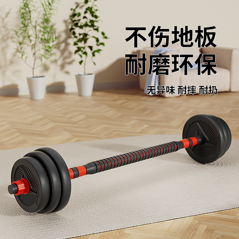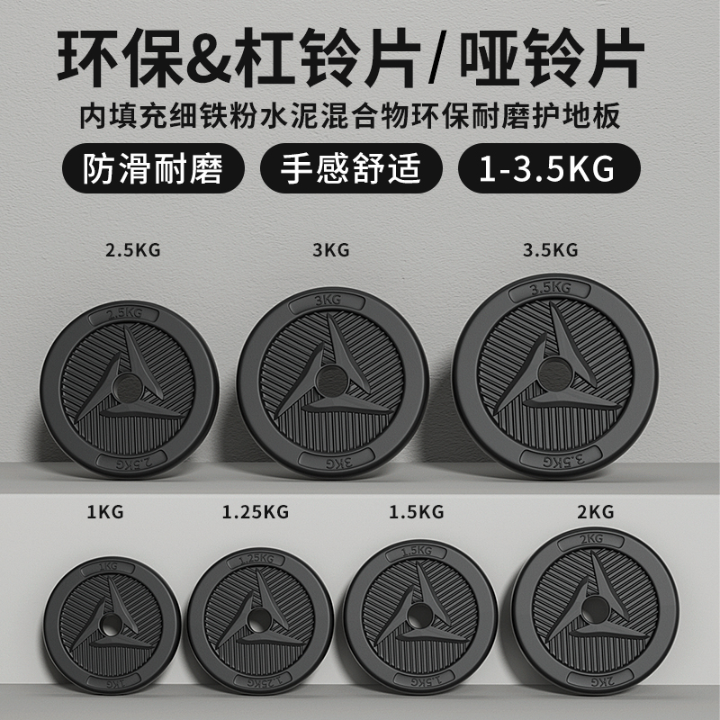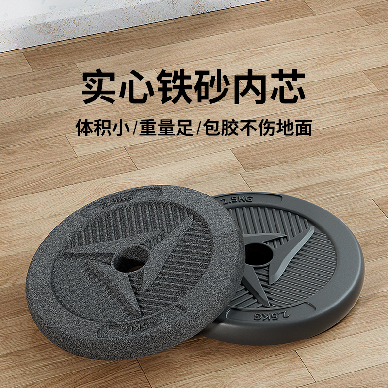 环保哑铃片杠铃片小孔包胶家用健身器材通用男女士举重深蹲练手臂