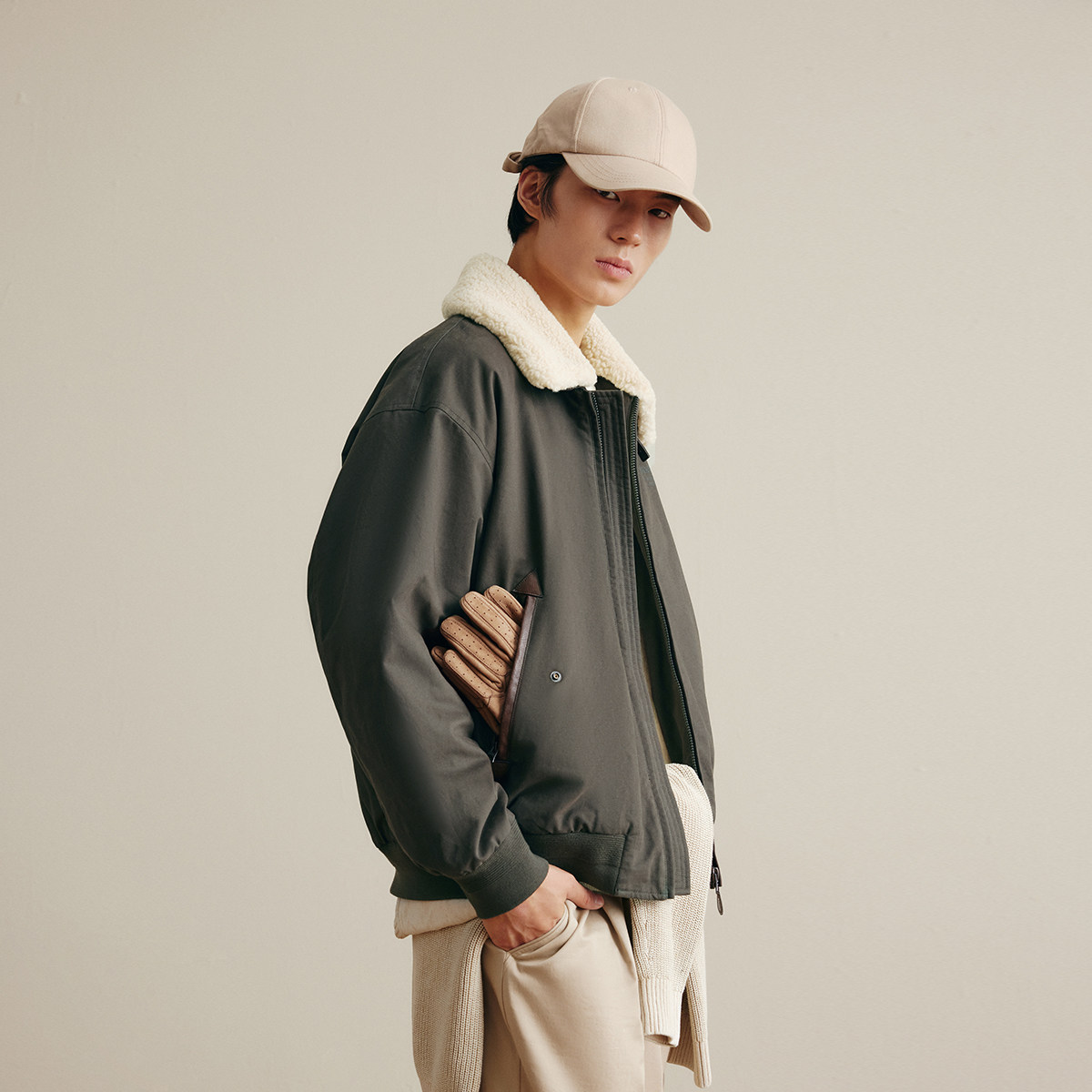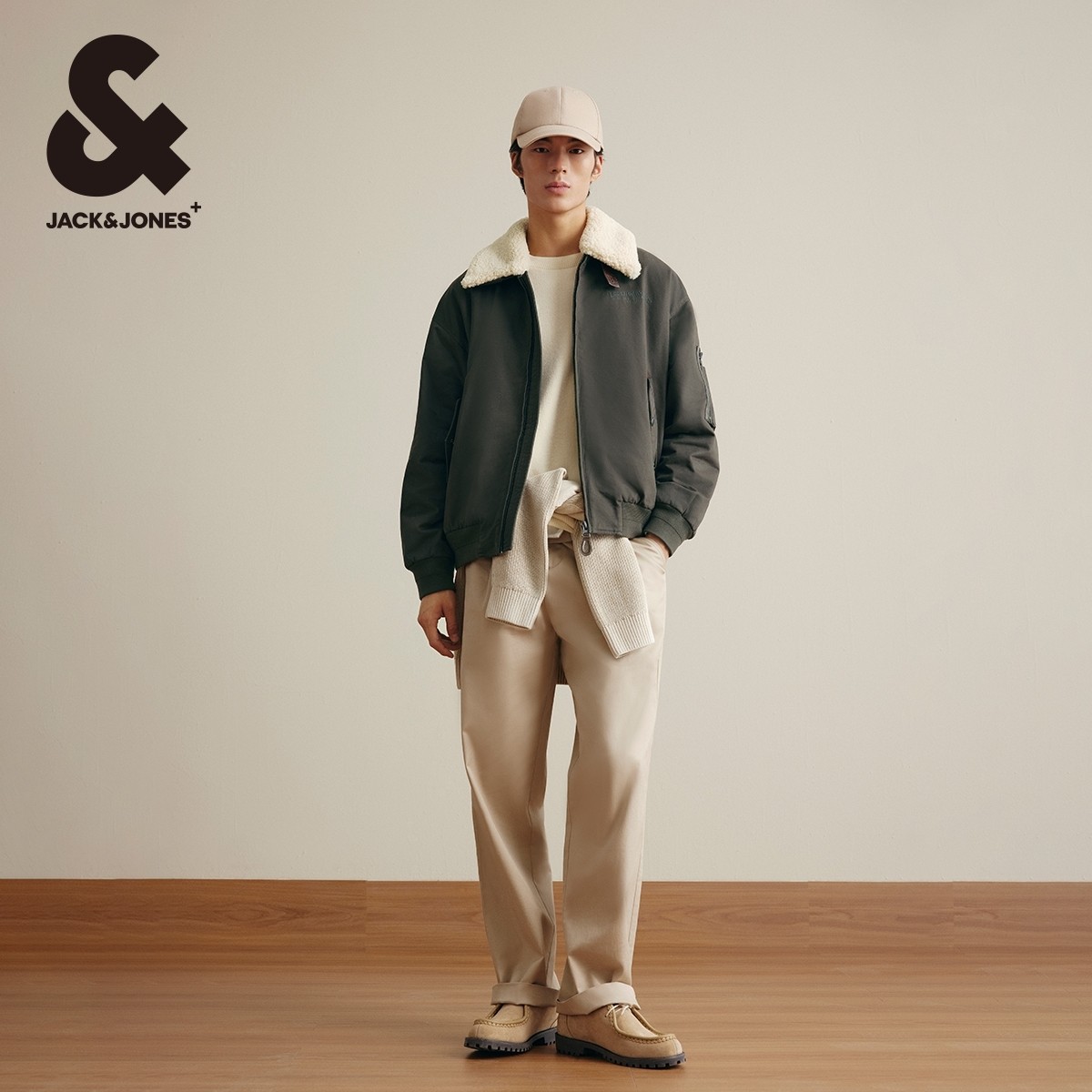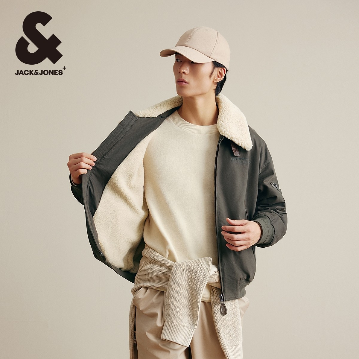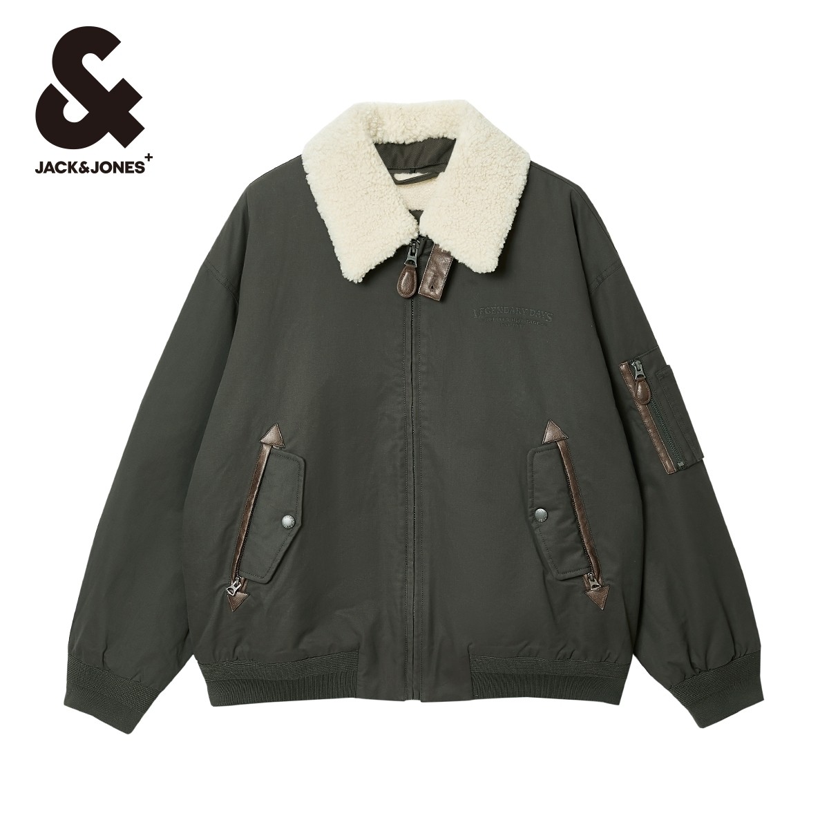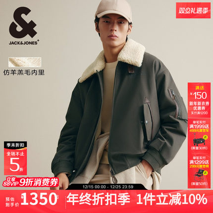 杰克琼斯男装秋冬仿羊羔毛翻领字母刺绣休闲日常夹克棉衣棉服外套
