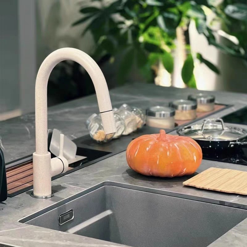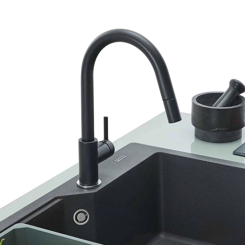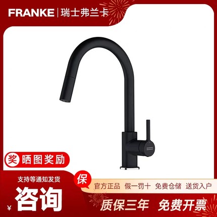 瑞士FRANKE弗兰卡高抛抽拉式龙头单孔单把黑色灰色厨房龙头CT933G