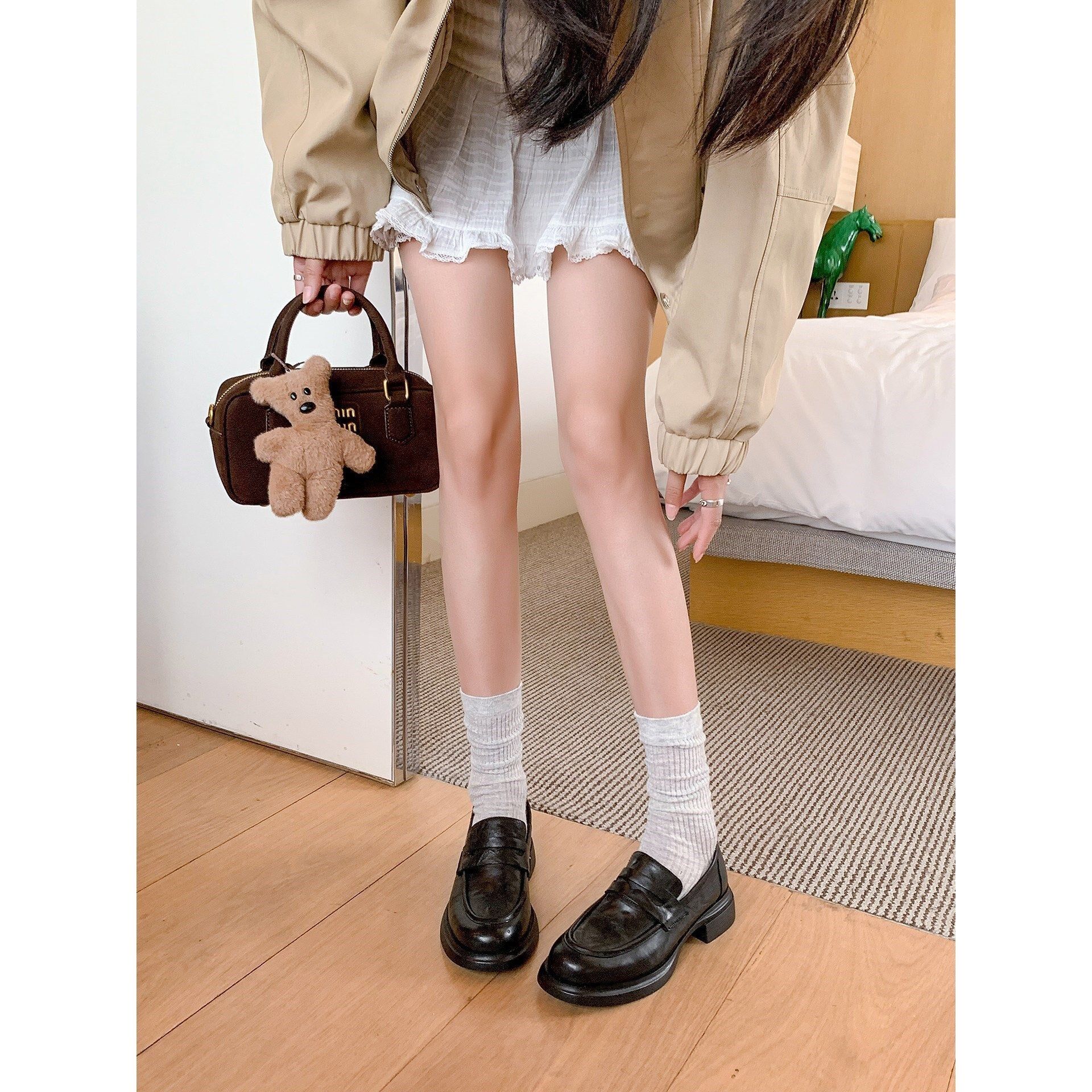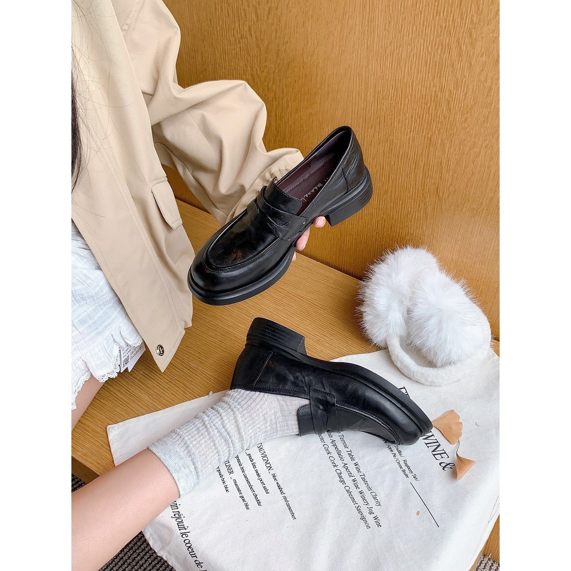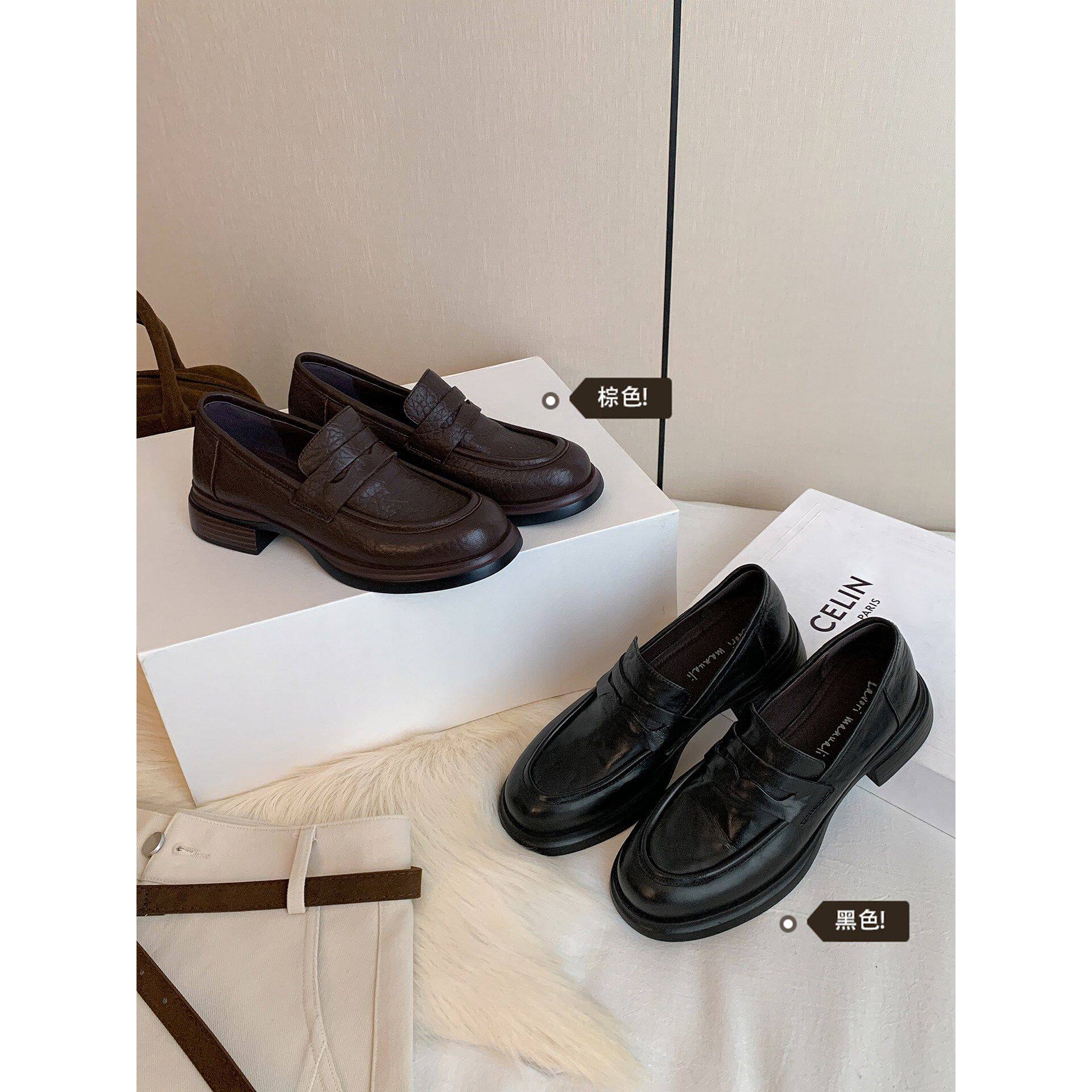 小皮鞋女英伦风懒人鞋2026春季新款粗跟一脚蹬棕色复古乐福鞋潮