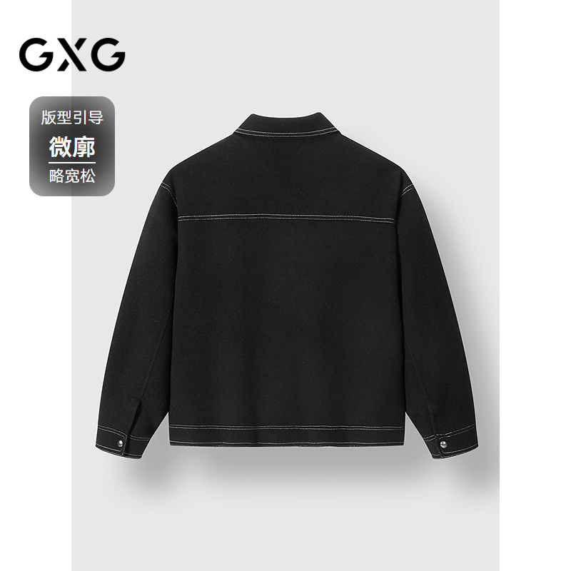 GXG男装 黑色商务通勤明线口袋短款计羊毛外套大衣 2024冬季新品