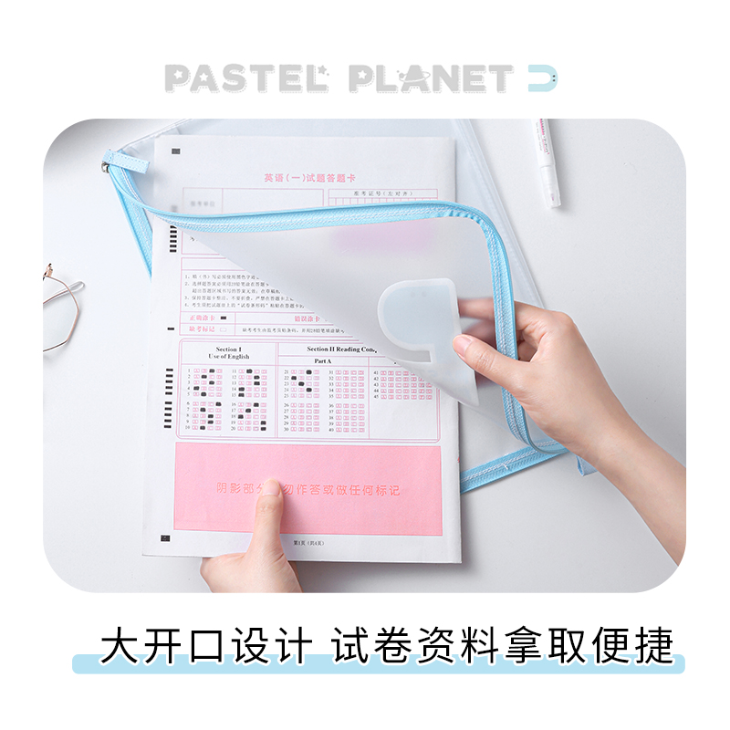 国誉KOKUYO淡彩星球系列透明文件袋小学生初中生试卷收纳袋办公文件袋学习资料手提袋B超产检单档案袋防泼水