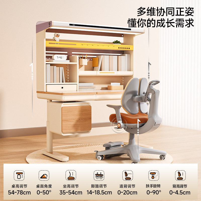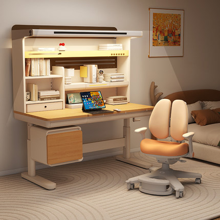 爱果乐儿童学习桌小学生家用书桌写字桌子实木可升降课桌椅咖啡猫