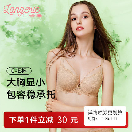 兰卓丽商场同款大胸显小薄杯文胸蕾丝大码胸罩收副乳女文胸内衣