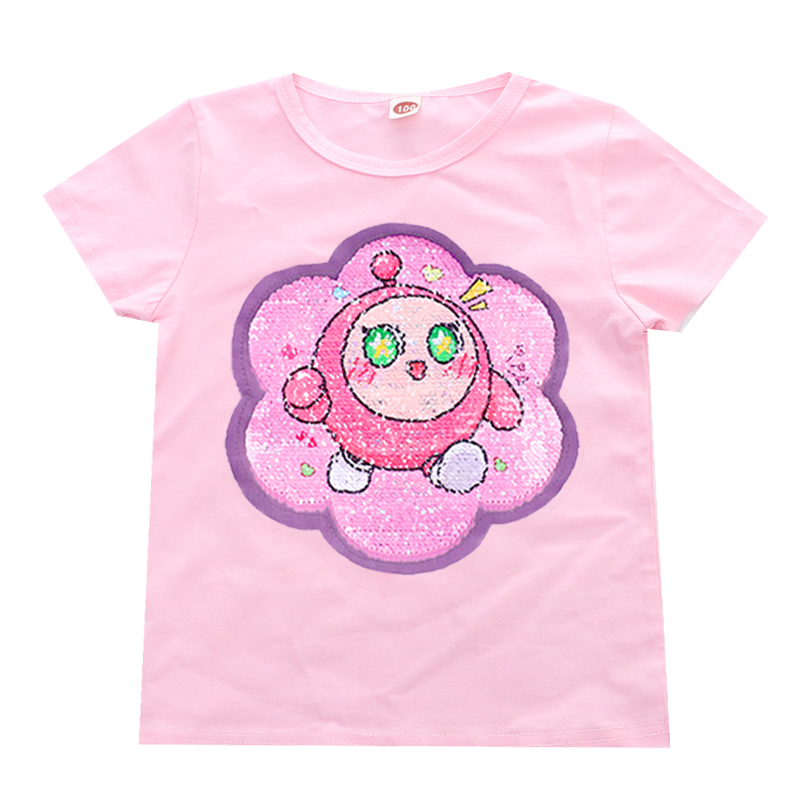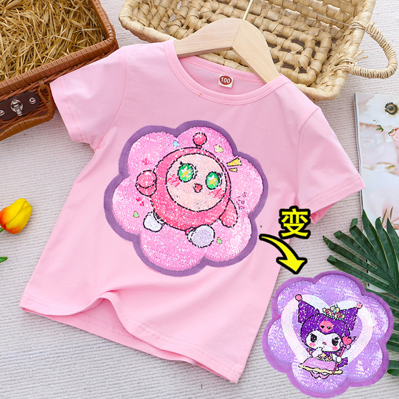 5岁女童短袖t恤蛋仔变脸库洛米衣服亮片变色衣服儿童半袖上衣夏装