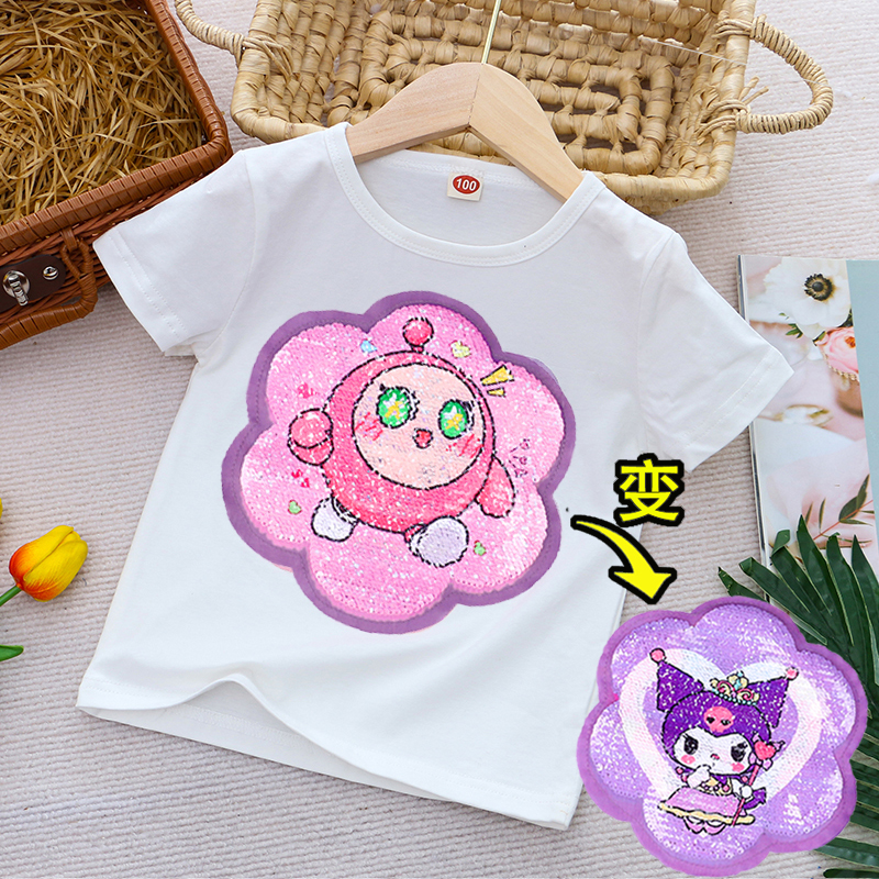女童库洛米短袖t恤亮片变脸装
