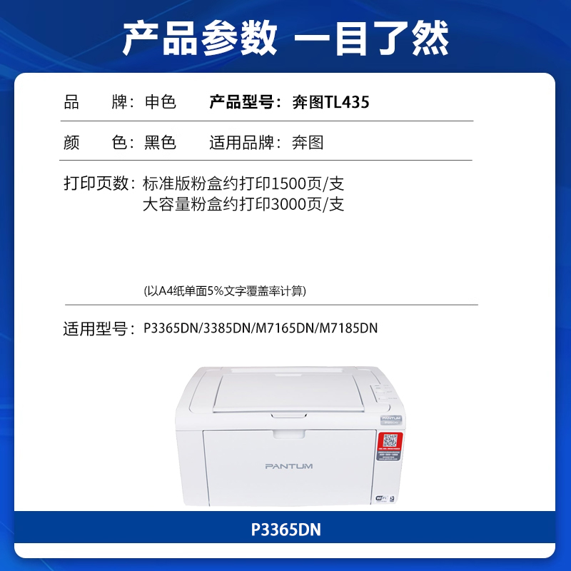 适用奔图P3365DN粉盒P3385DN M7165DN硒鼓M7185DN碳粉盒TL-435打印机墨盒DL-435鼓架/鼓组件激光一体机墨粉盒