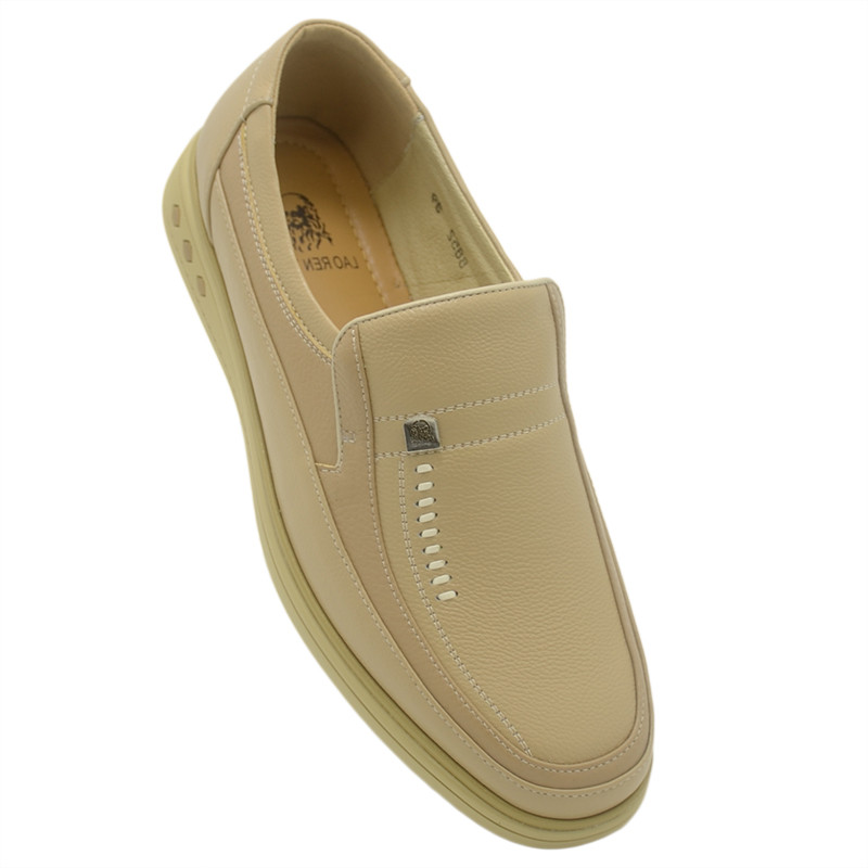 夏季真皮米色米黄色皮鞋男真皮浅色白鞋商务休闲软底中老年爸爸鞋