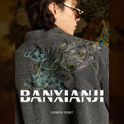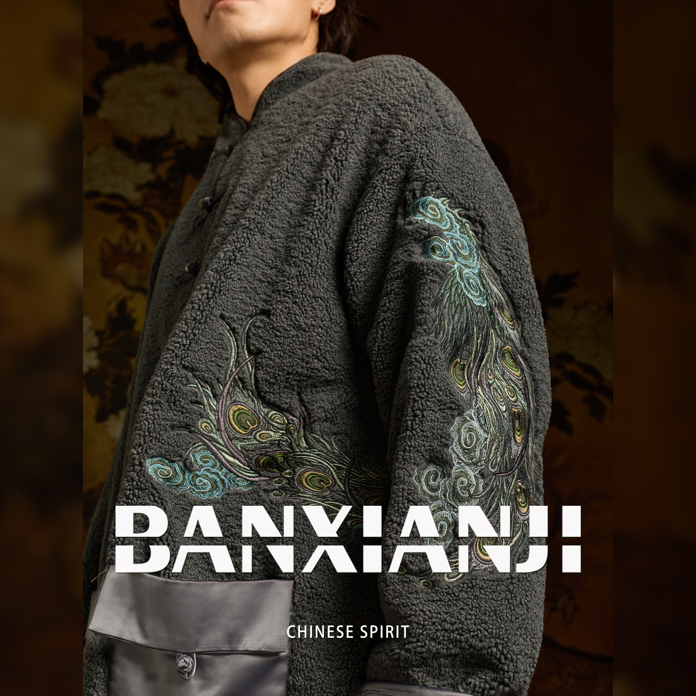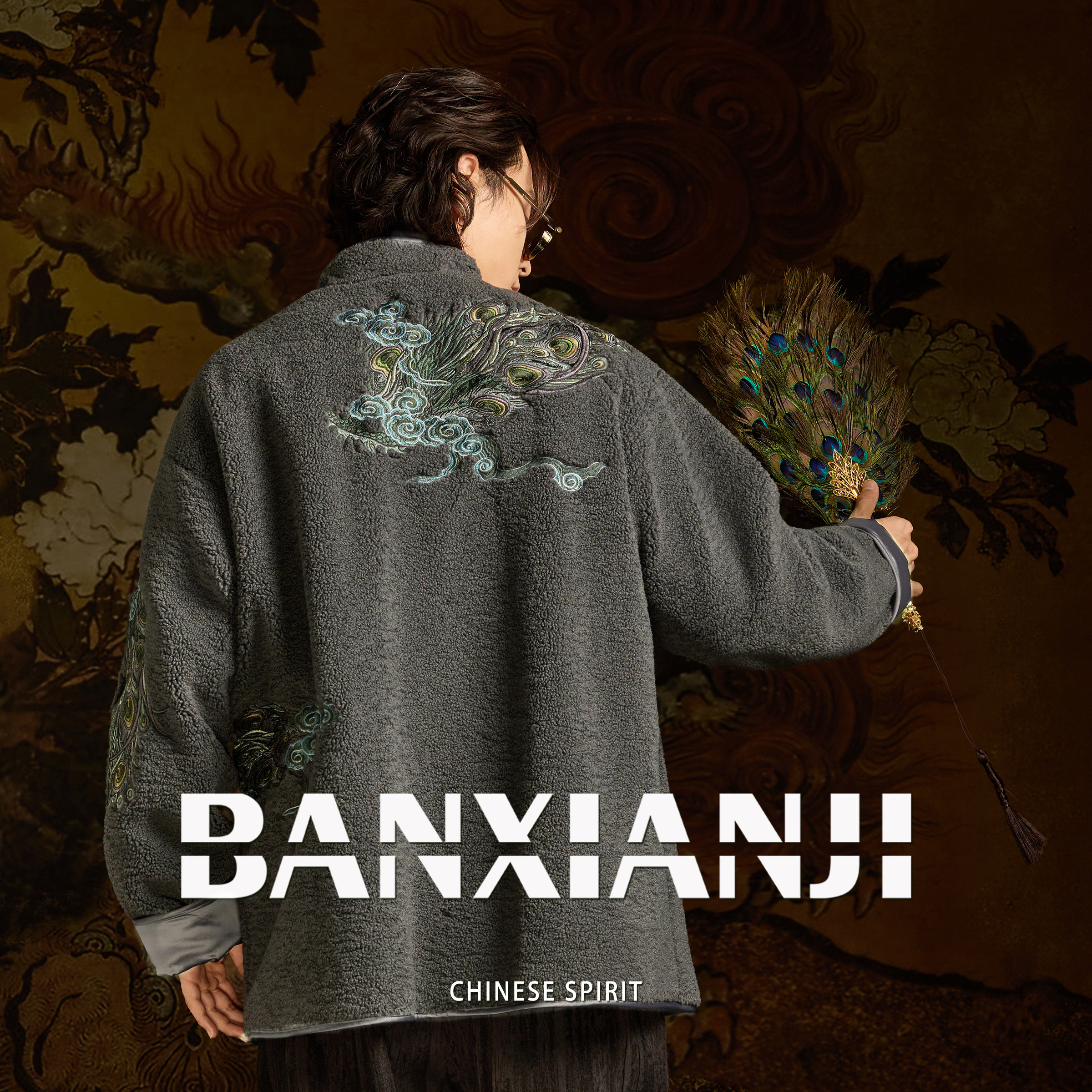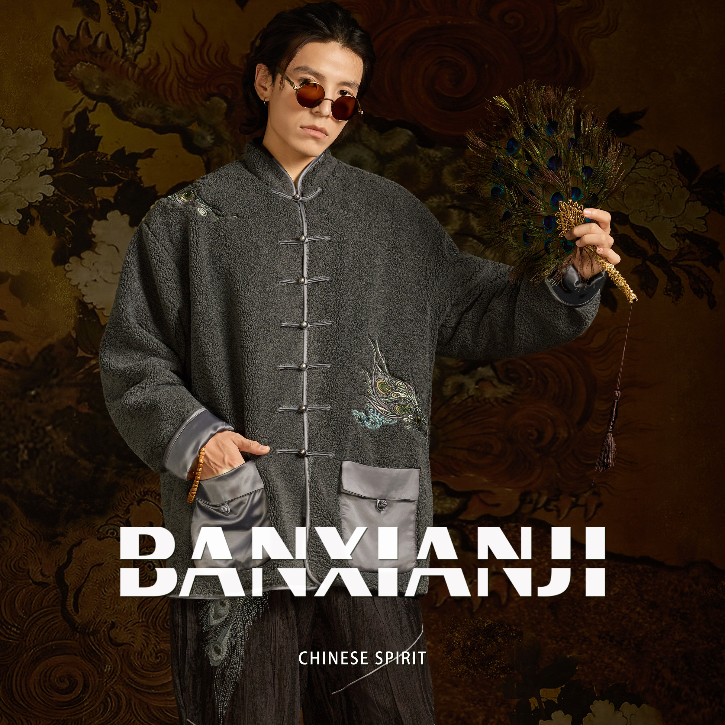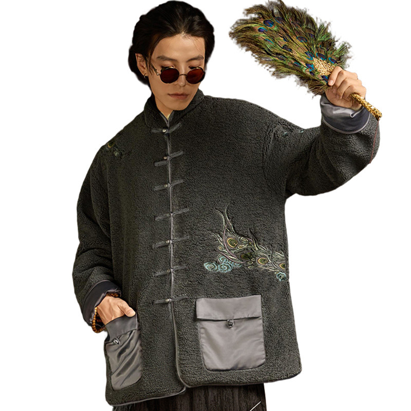半闲集<凤毛麟角>刺绣羊羔绒外套男新中式唐装冬季保暖休闲外套
